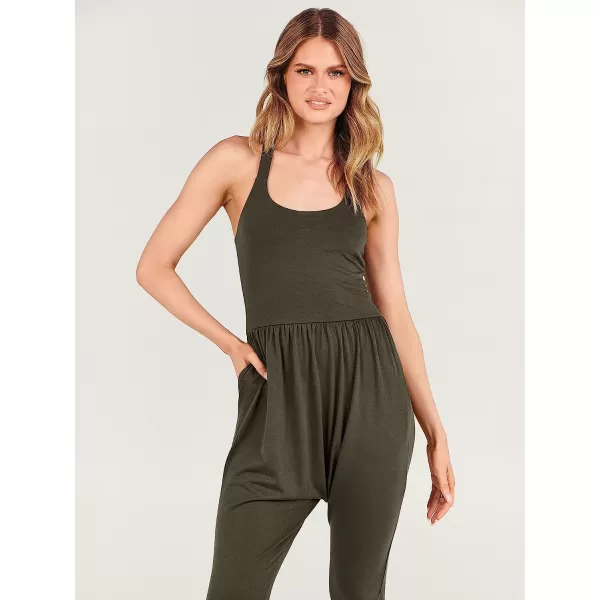 ANRABESS Women Summer Casual Loose Sleeveless Jumpsuit Romper Tank Harem Overalls Yoga Outfits(Army Green)