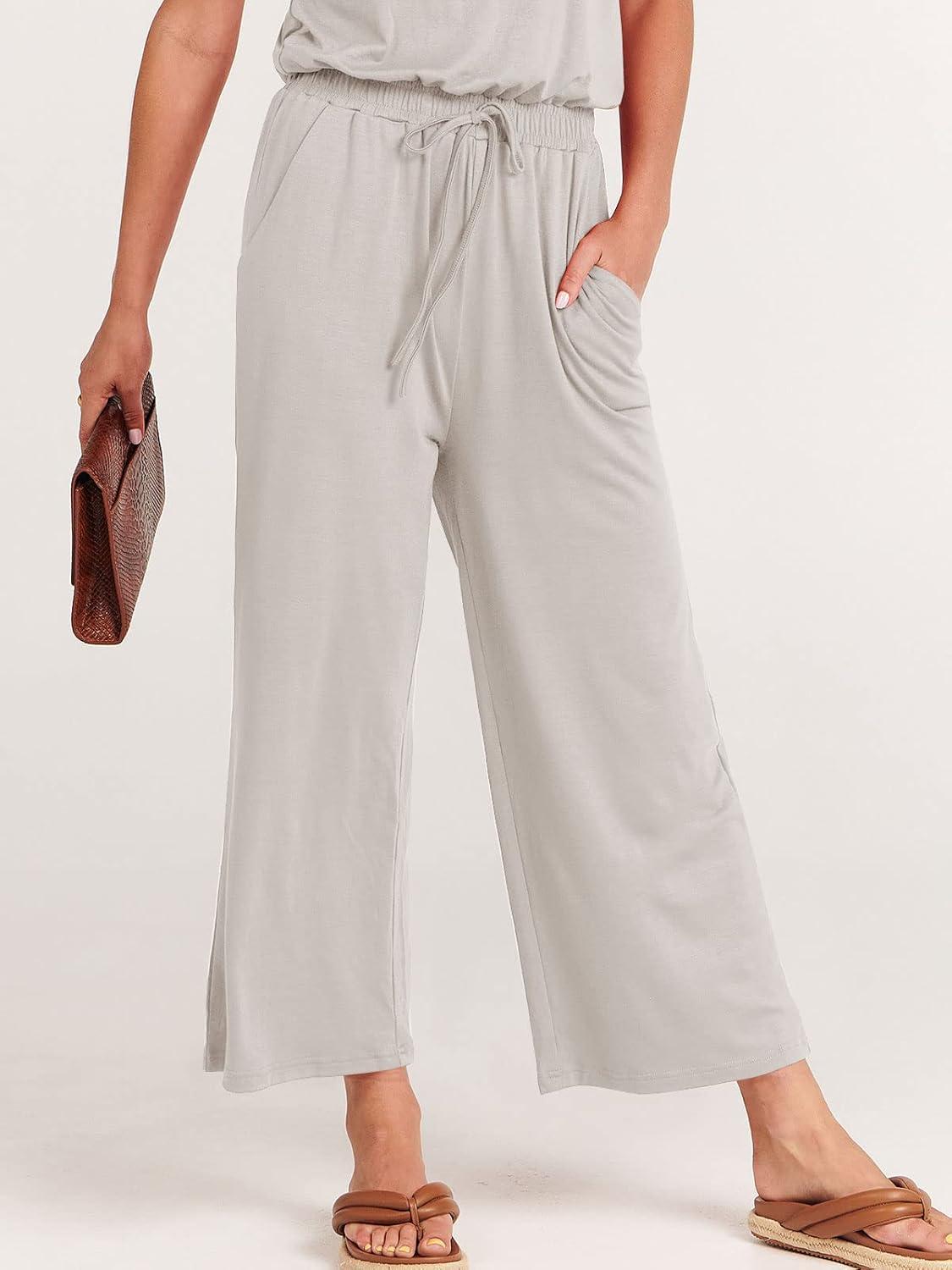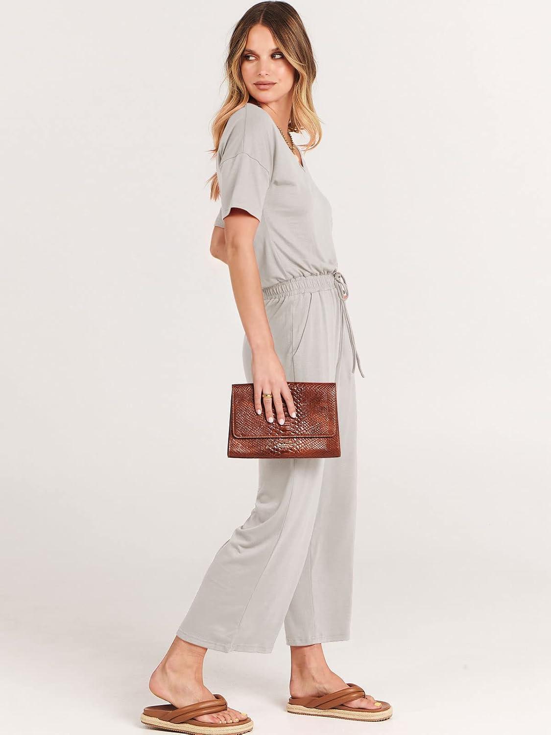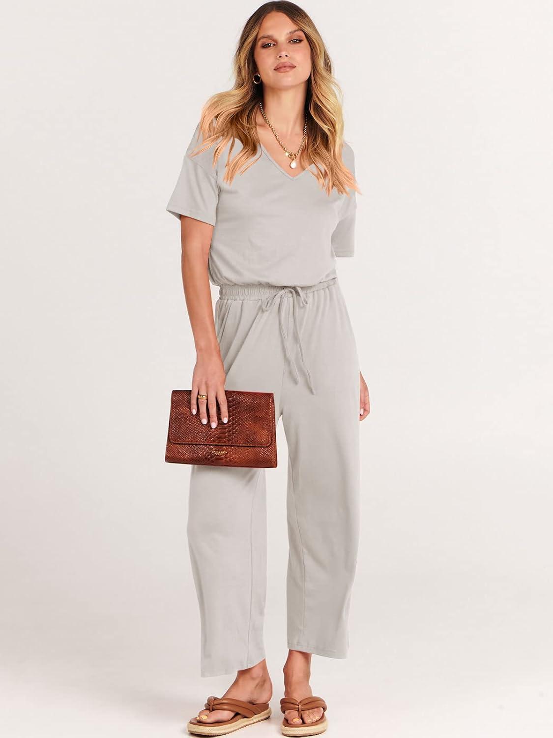 Get the ANRABESS Women Summer Casual Short Sleeve V Neck Elastic Waist Wide Leg Cropped Pants Jumpsuits Rompers with Pockets(02-light Gray) you want at a discounted price during our markdown sale event.