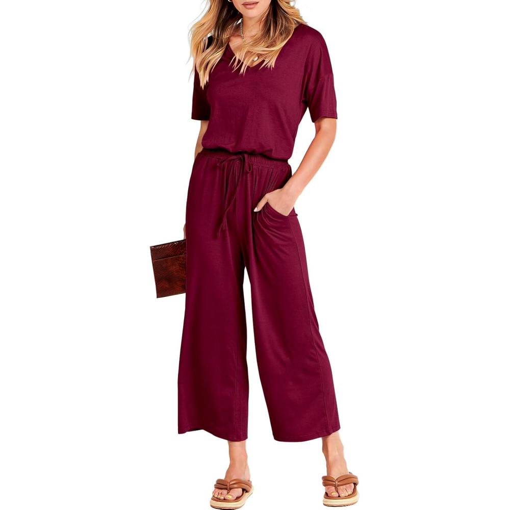 Our clearance event features the best deals on ANRABESS Women Summer Casual Short Sleeve V Neck Elastic Waist Wide Leg Cropped Pants Jumpsuits Rompers with Pockets(02-wine Red) and accessories. Shop now!