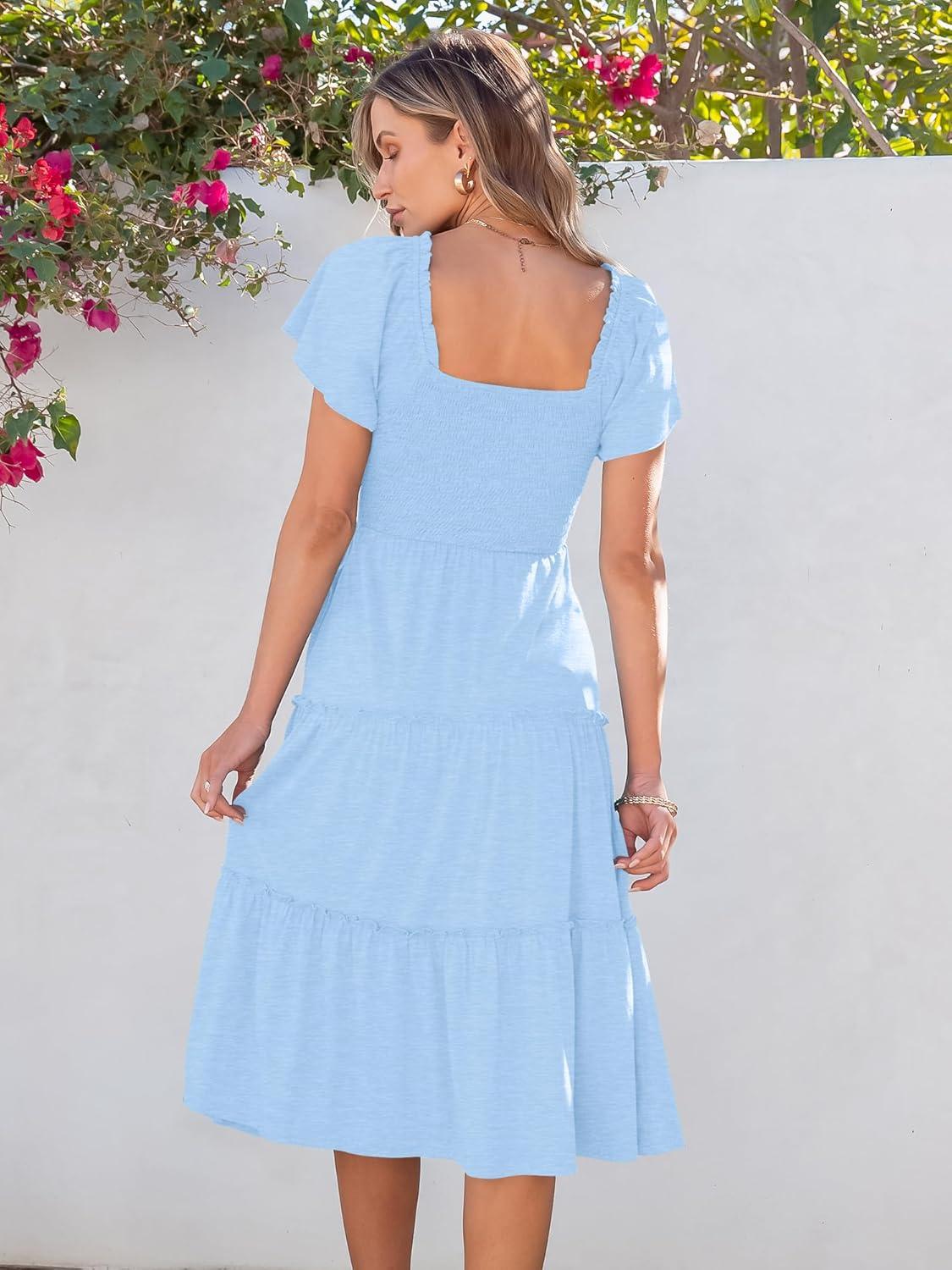 Don’t miss out on our limited-time offer: buy ANRABESS Women Summer Casual Square Neck Flutter Sleeve Boho Smocked A-Line Flowy Tiered Modest Midi Sun Dress with Pockets(Light Blue), get {accessory} free!