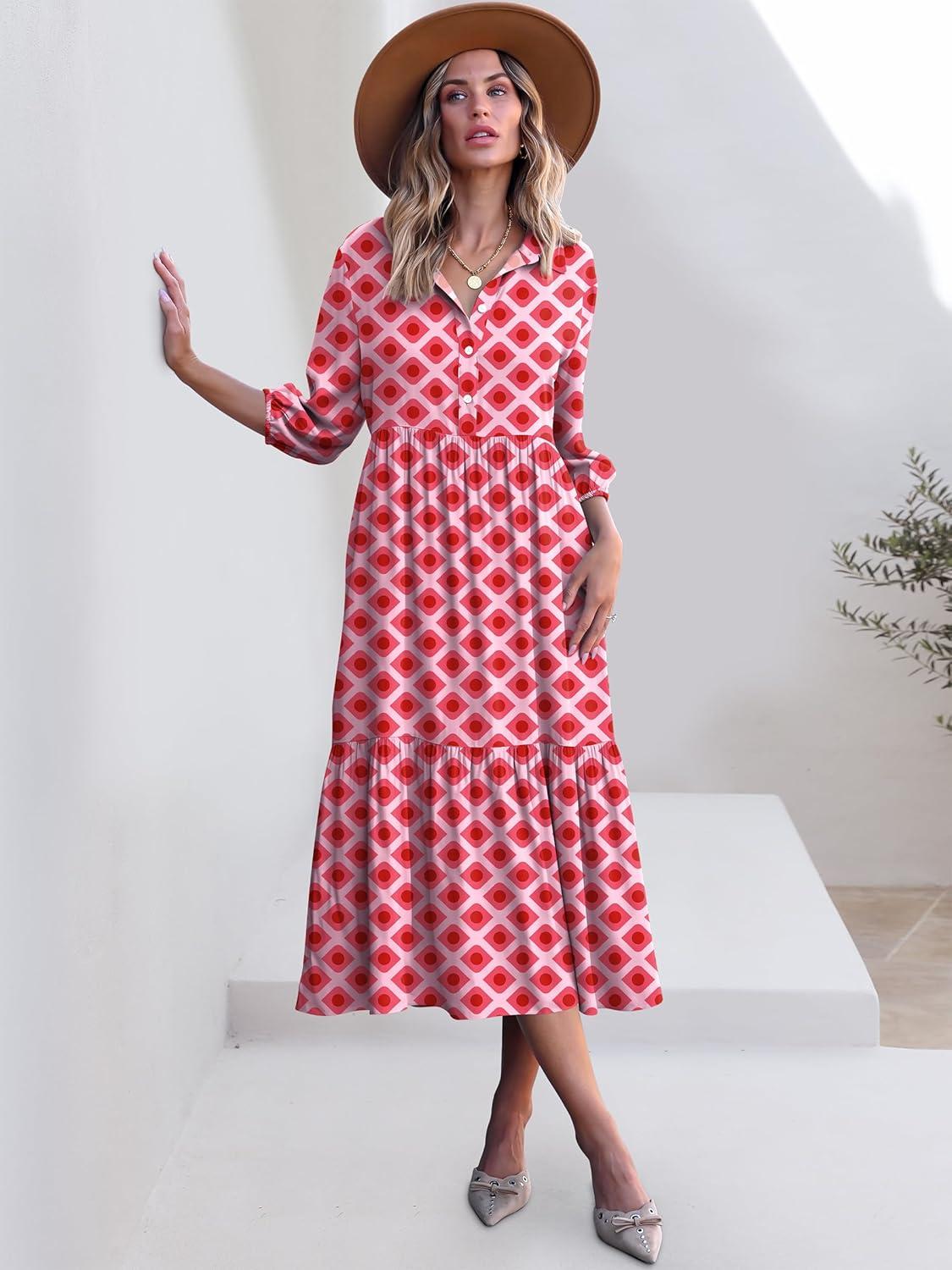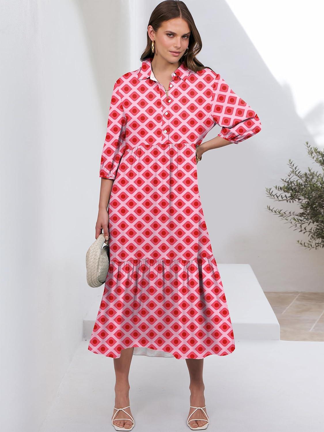 Get the ANRABESS Women Summer Dress 2025 3/4 Puff Sleeve Polo V Neck Floral Print Casual Boho Shirt Maxi Dress Beach Vacation Clothes(Floral Red) you want at a price you can afford with our markdown sale.