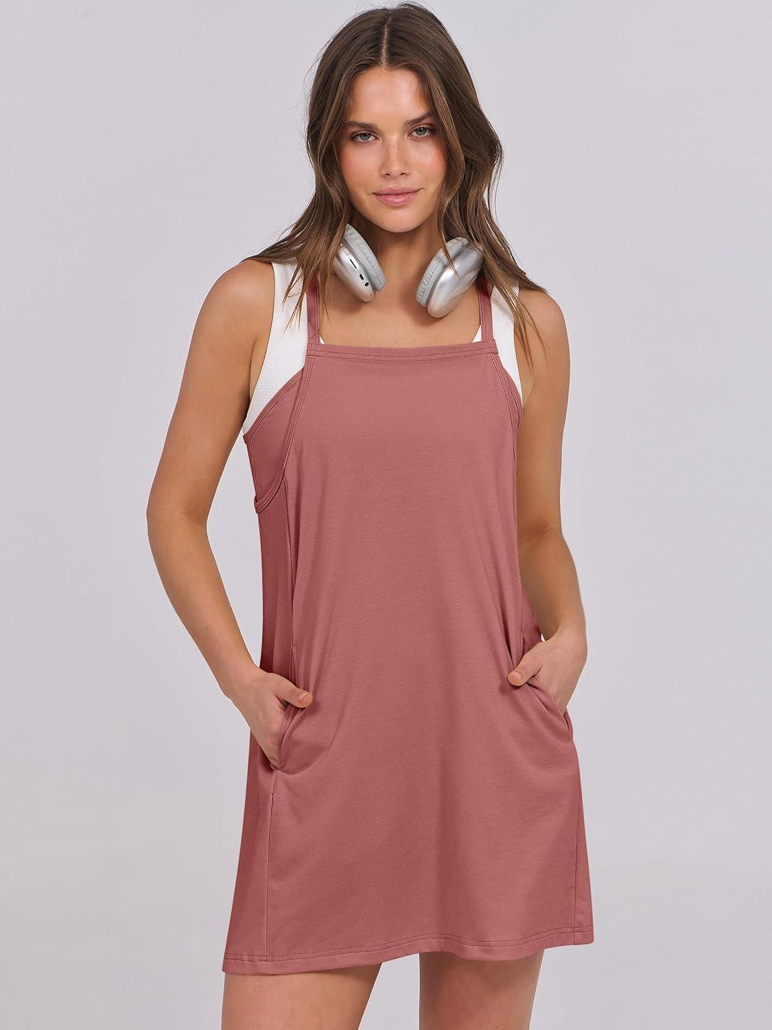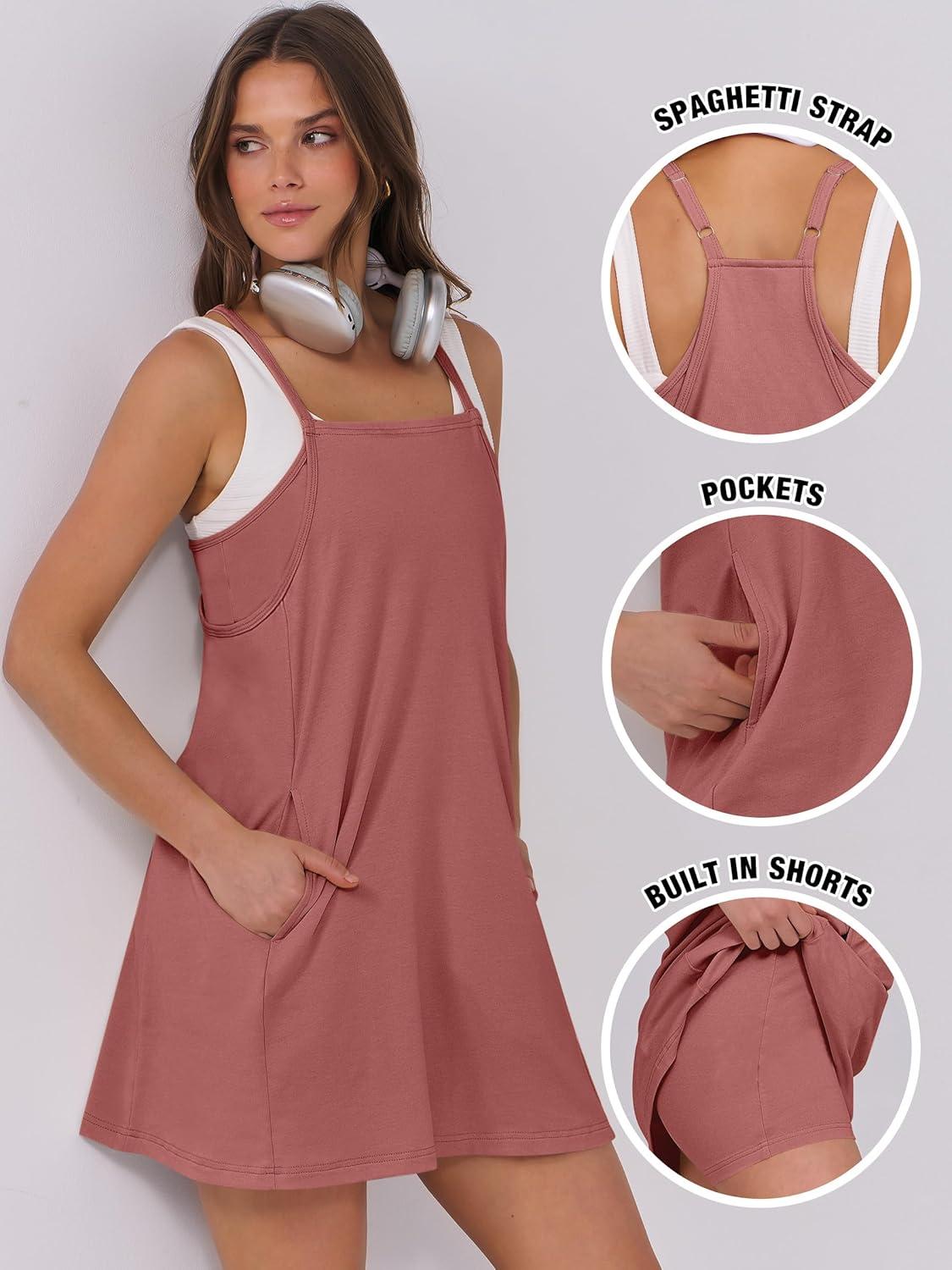 ANRABESS Women Summer Dress 2025 Beach Vacation Outfits Tennis Athletic Workout Romper Dress Built in Shorts Travel Clothes(Rust Red)