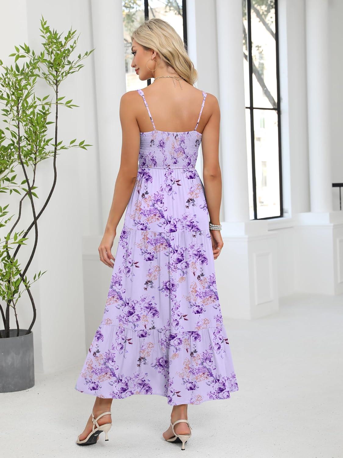 ANRABESS Women Summer Maxi Dress 2025 Square Neck Sleeveless Casual Boho Floral High Waist Slit Travel Vacation Sundress(Light Purple Floral)