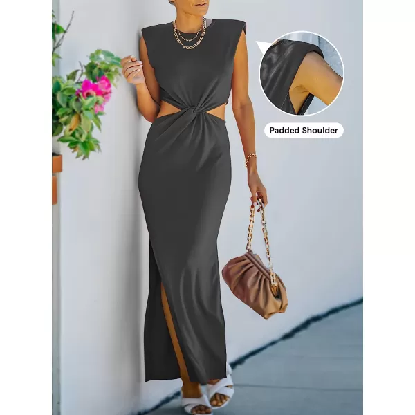 imageANRABESS Women Summer Sleeveless Padded Shoulder Sexy Cutout Waist Bodycon Formal Party Maxi Dress with Slit for Cruise BeachDark Gray