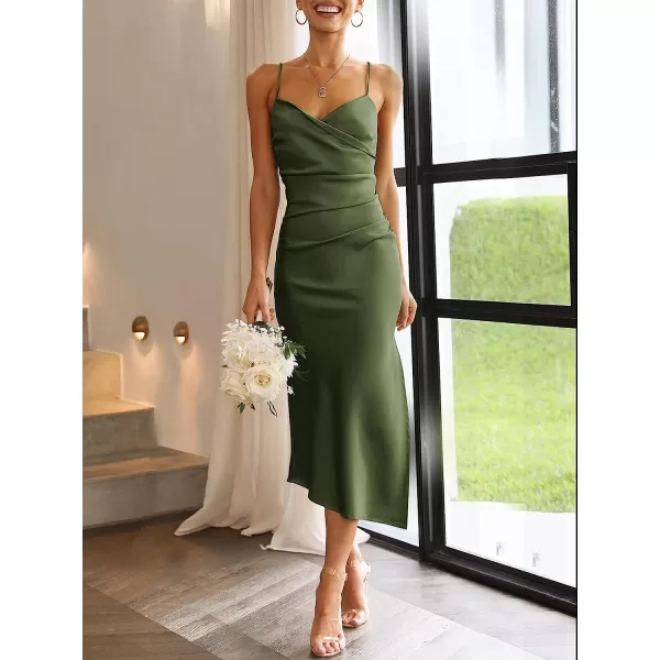 imageANRABESS Women Summer Spaghetti Strap Wrap V Neck Ruched Bodycon Satin Slit Cocktail Prom Formal DressesArmy Green