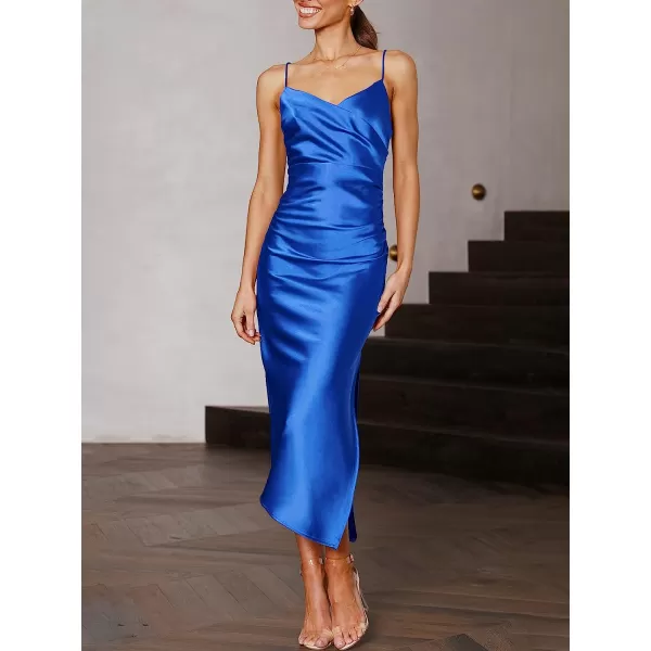 Features – Sleeveless,adjustable Spaghetti Strap, Wrap V Neck, Bodycon, Ruched, satin, Cocktail Midi Dress,Side Split,Backless.