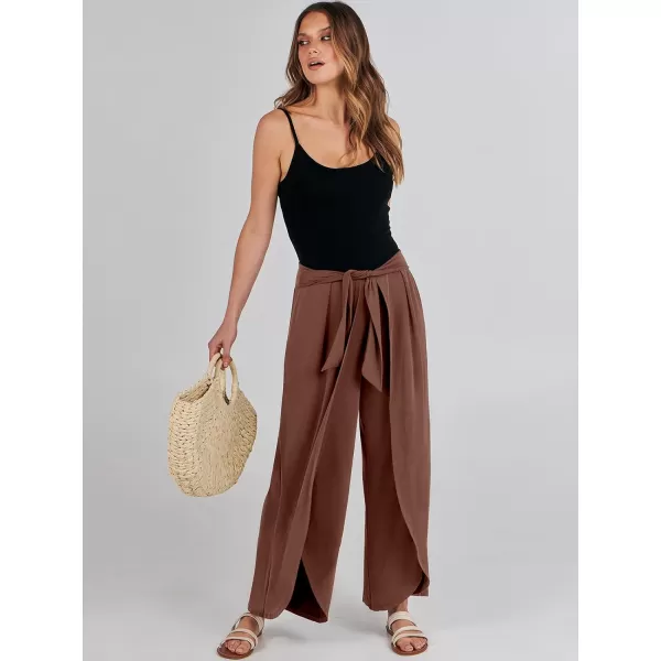 imageANRABESS Women Summer Wide Leg Pants Tie Front Loose Flowy High Waisted Casual Slit Boho Lounge Palazzo Pants TrousersRust