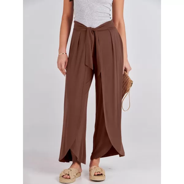 ANRABESS Women Summer Wide Leg Pants Tie Front Loose Flowy High Waisted Casual Slit Boho Lounge Palazzo Pants Trousers(Rust)