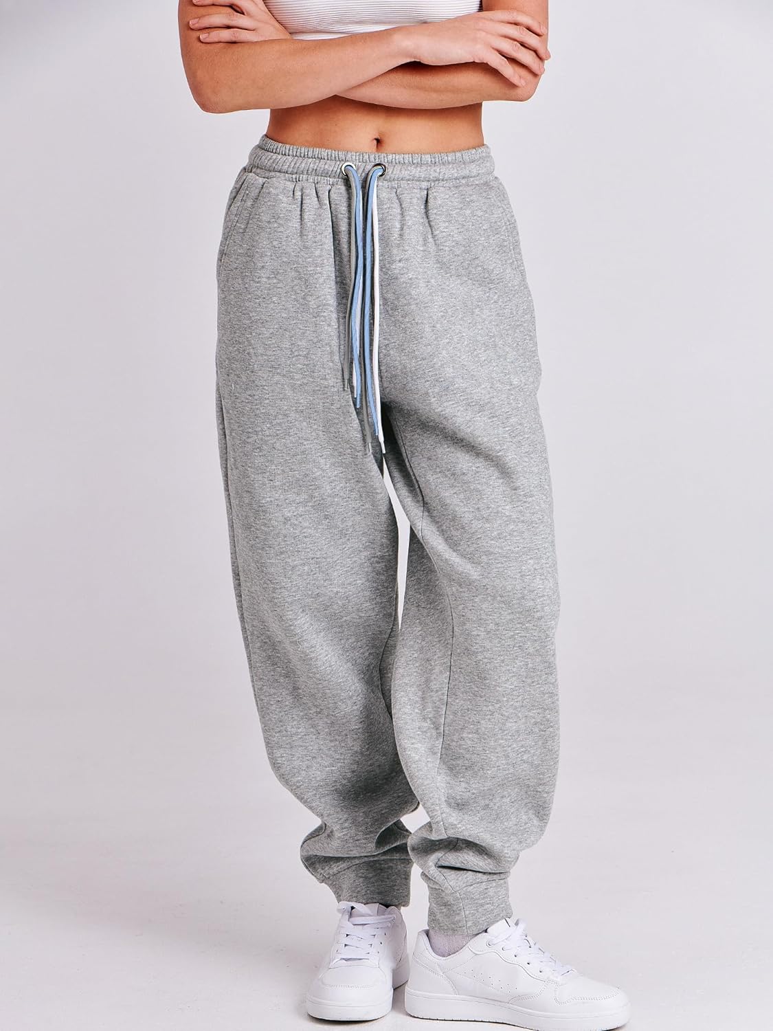 ANRABESS Women Sweatpants Baggy High Waist Fleece Athletic Jogger Pant Trousers Y2K Teen Girls(Gray)