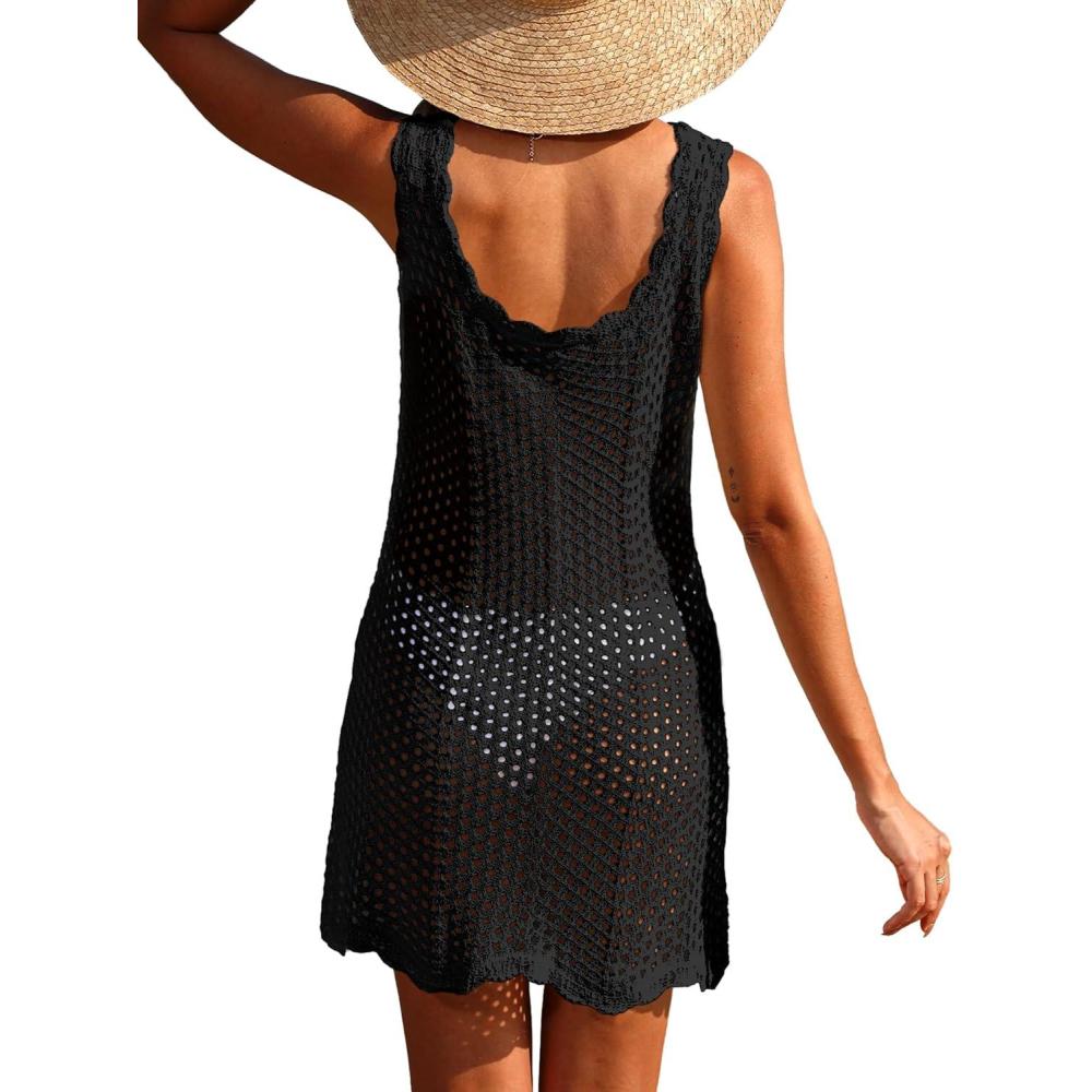 imageANRABESS Women Swimsuit Cover Ups Summer Sleeveless Beach Crochet Swimwear Bathing Suit Knit Swim Dress 2025 Vacation OutfitsBlack