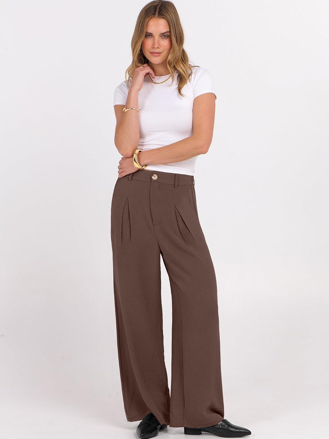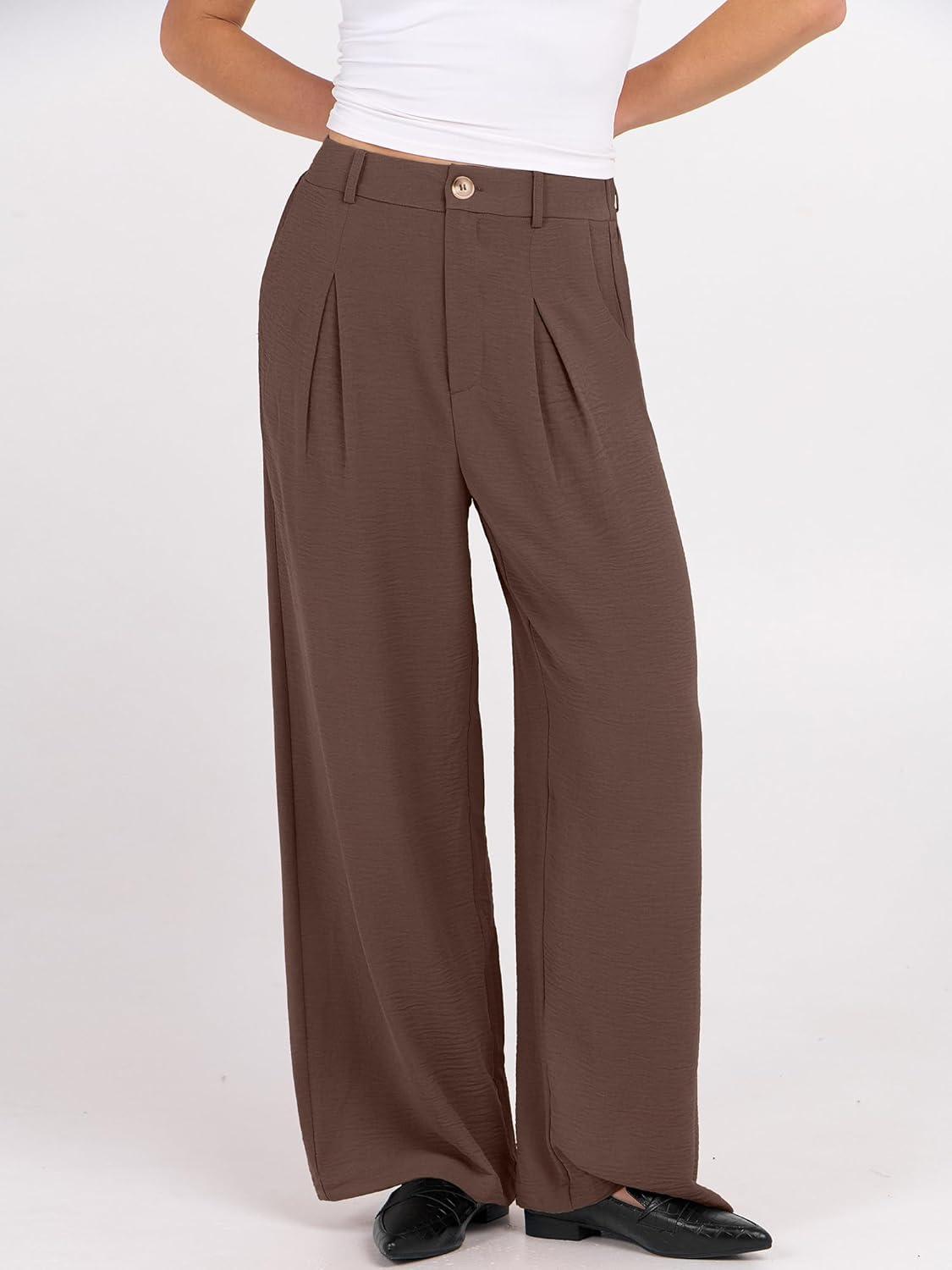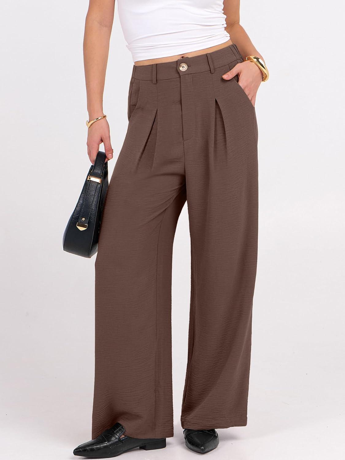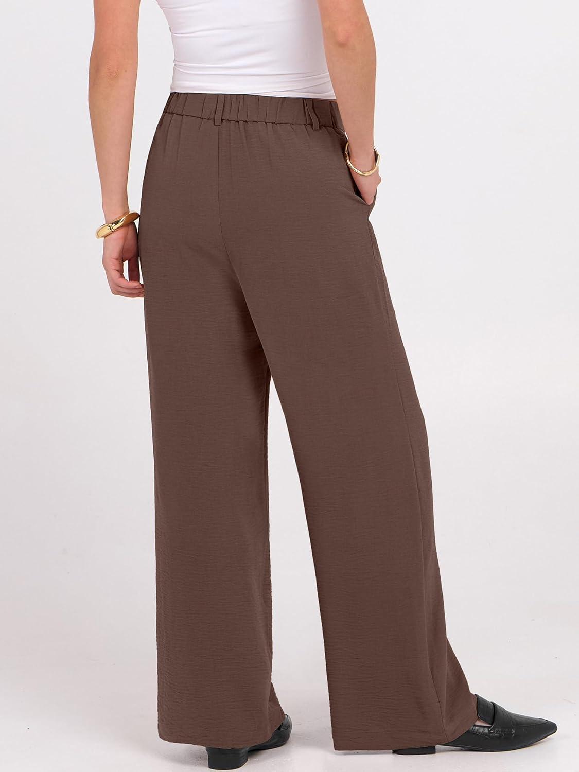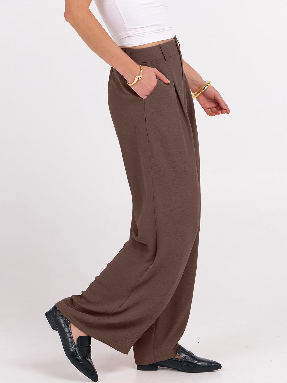 imageANRABESS Women Wide Leg Dress Pants Lightweight High Waisted Business Casual Trousers Dressy Office Work Palazzo Pants SlacksDeep Brown