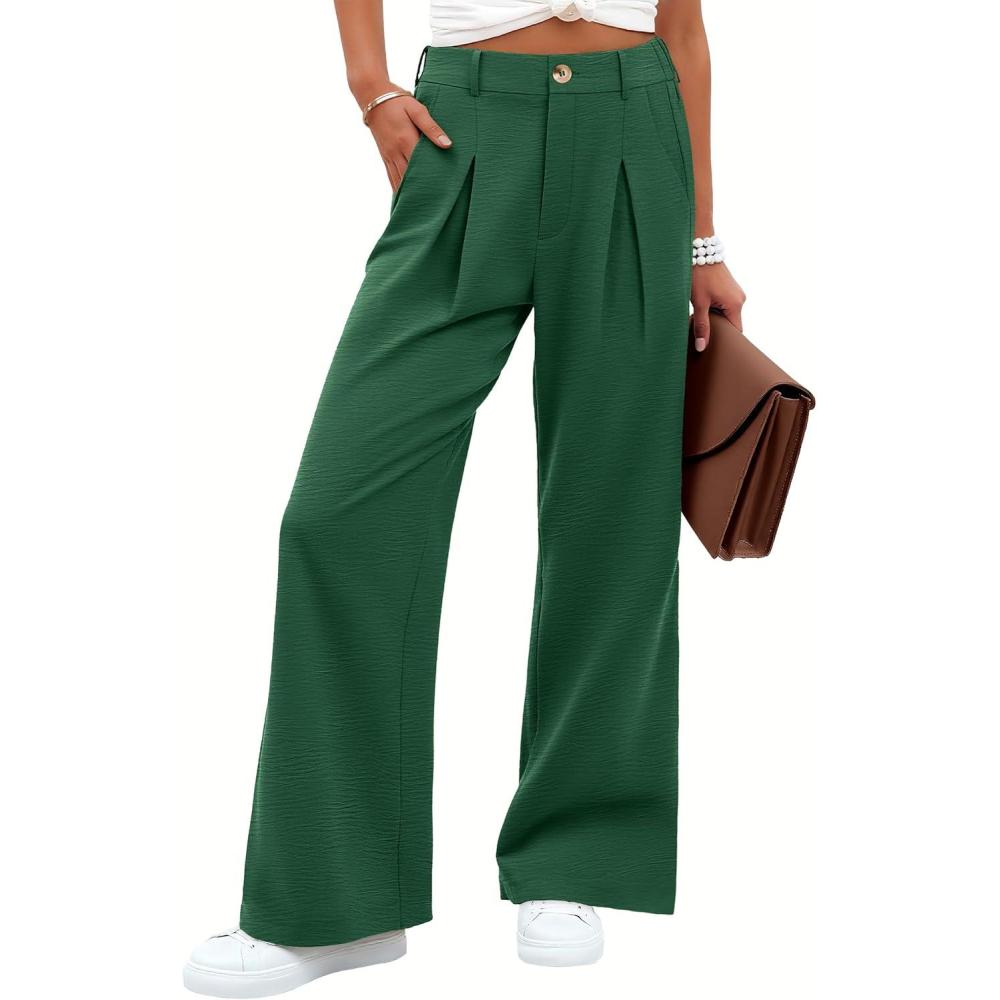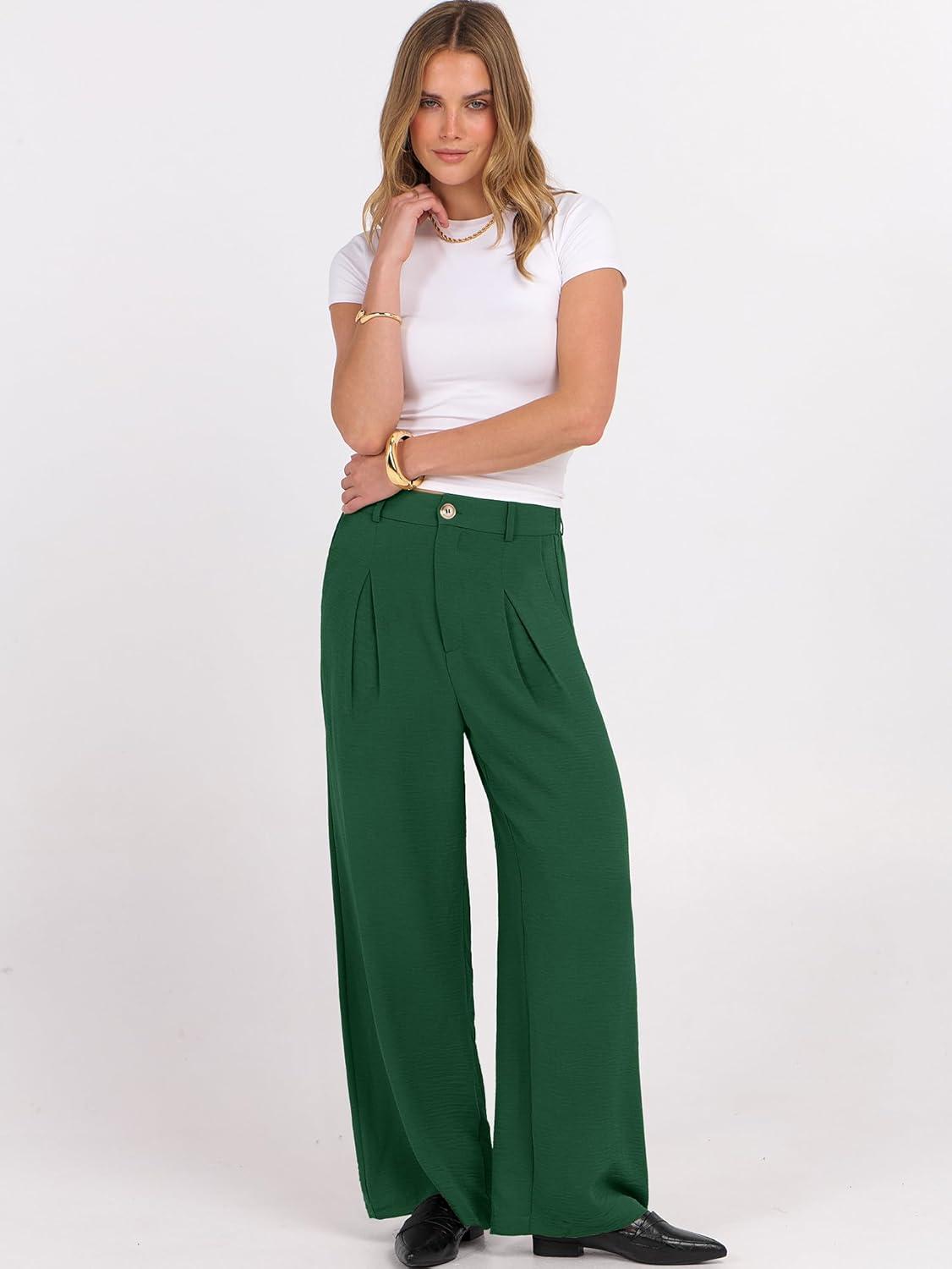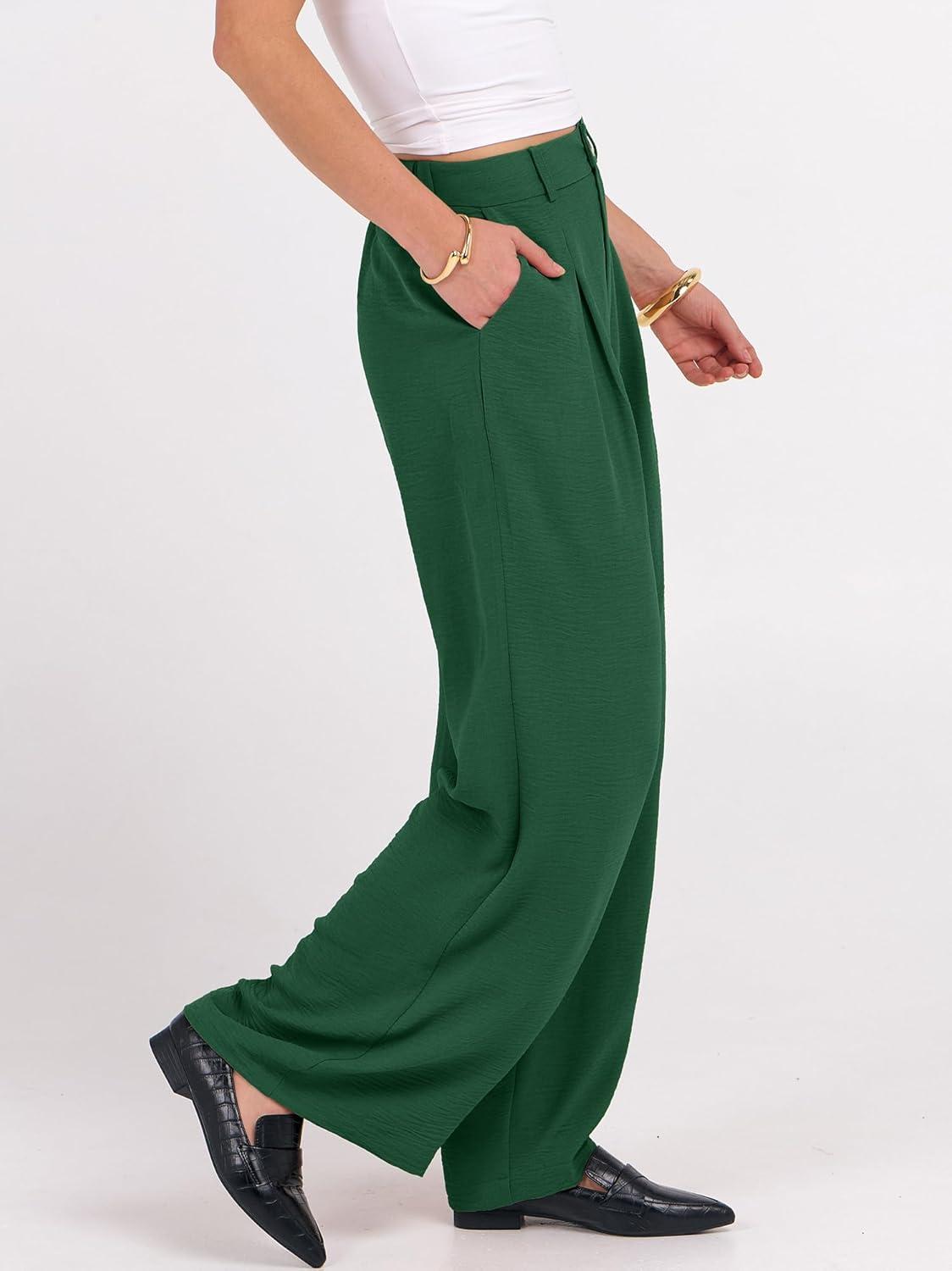 ANRABESS Women Wide Leg Dress Pants Lightweight High Waisted Business Casual Trousers Dressy Office Work Palazzo Pants Slacks(Green Forest)