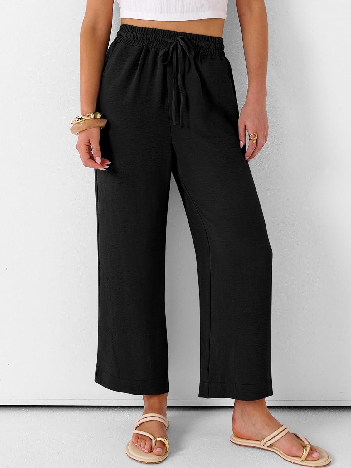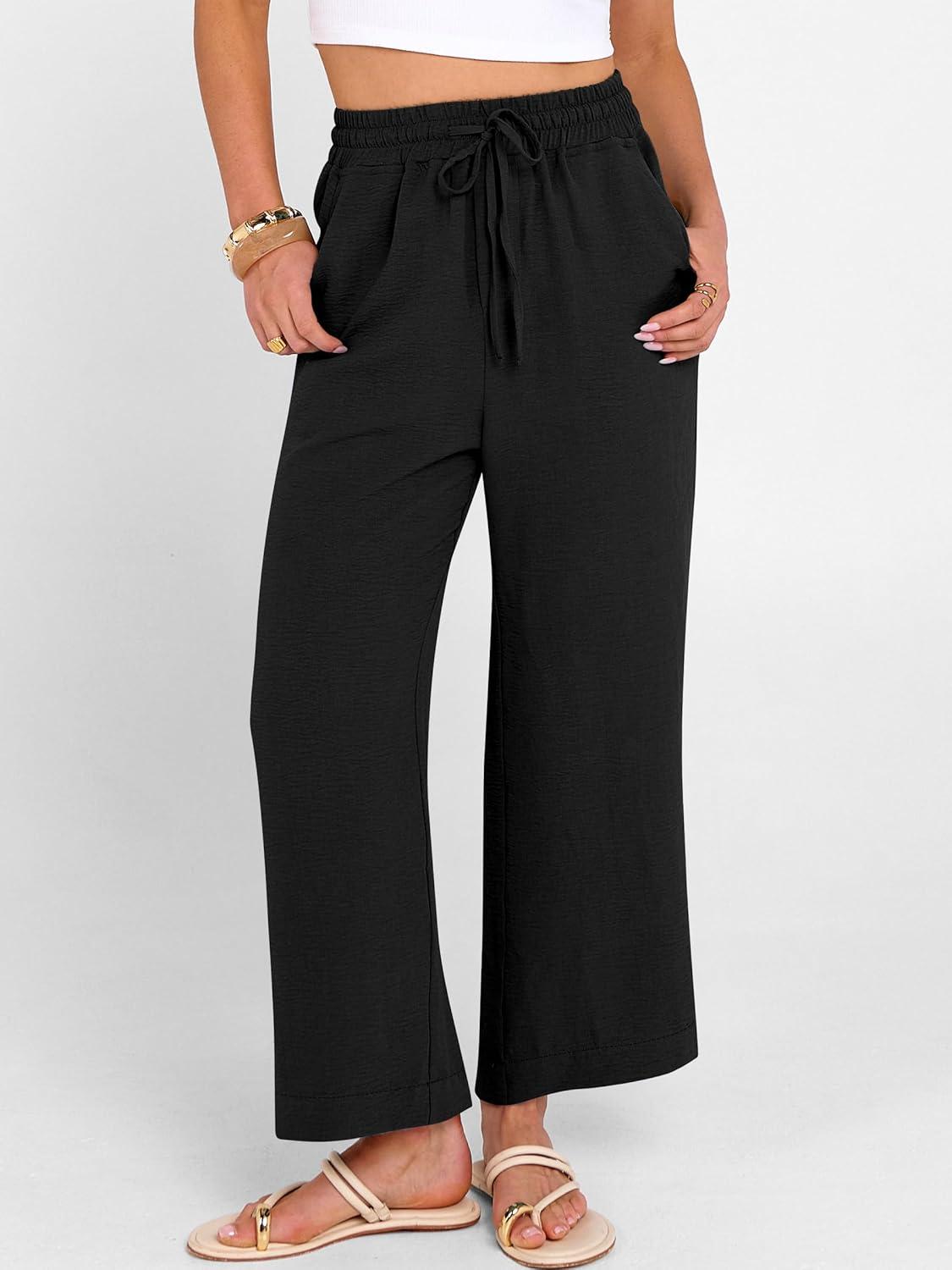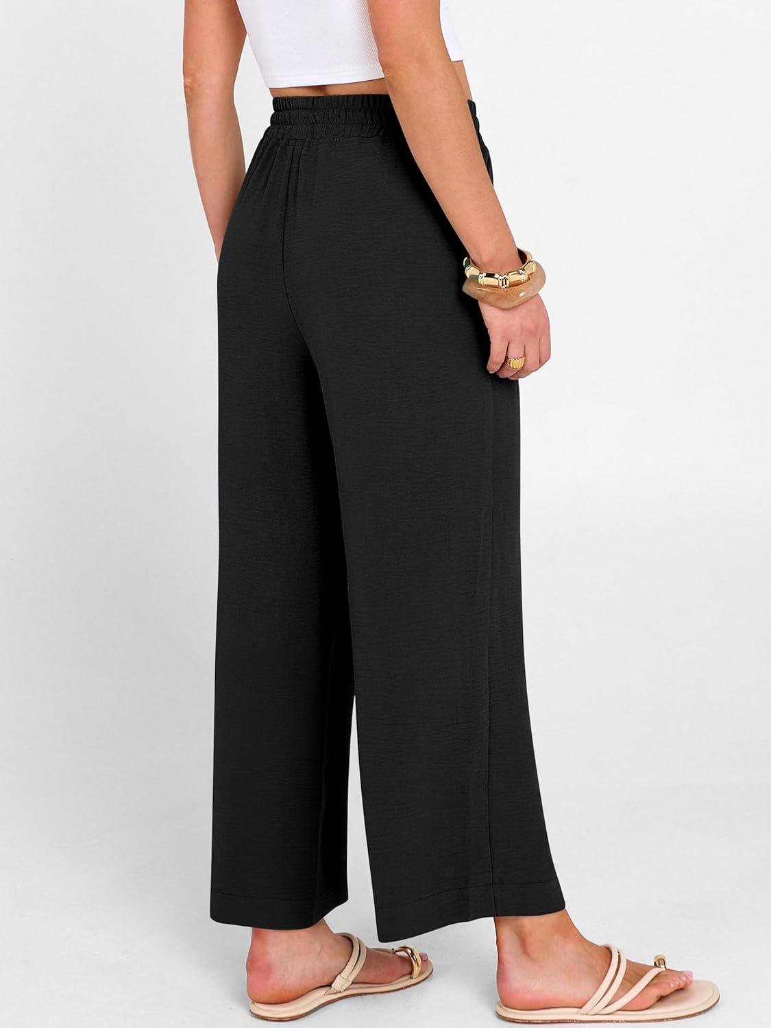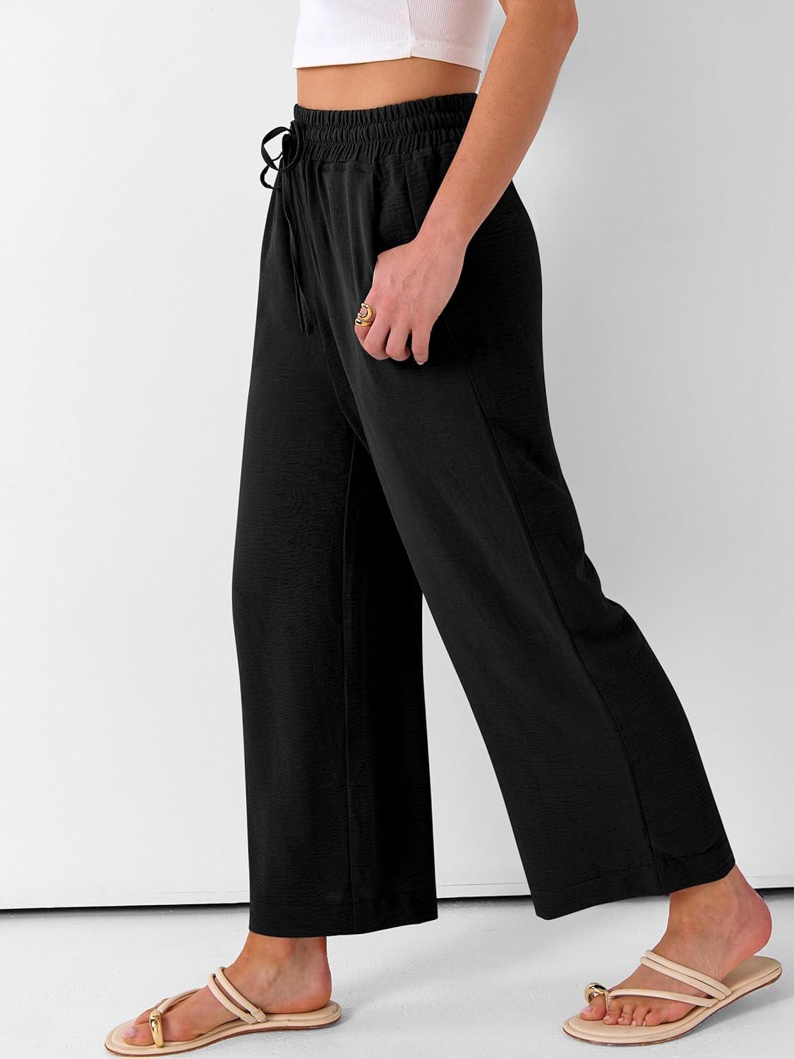 ANRABESS Women Wide Leg Palazzo Pants Summer High Waisted Casual Loose Lounge Flowy Cropped Capri Beach Trousers Work Outfits(Black)