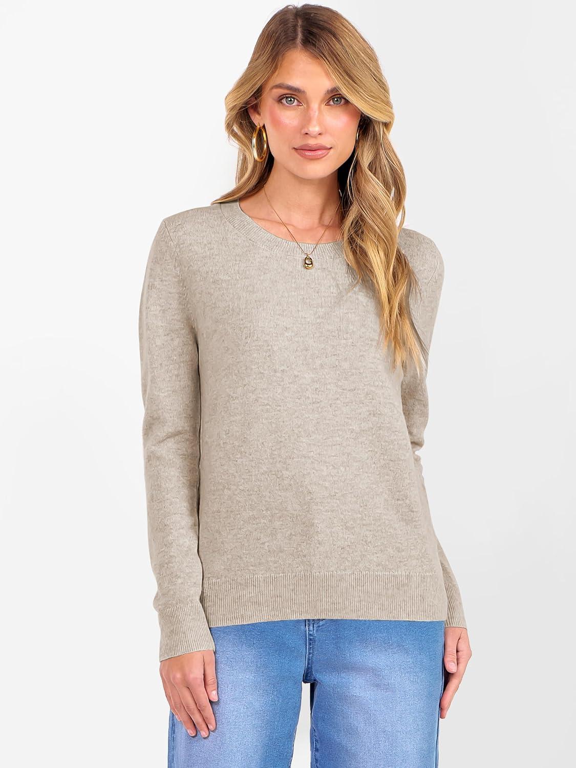 imageANRABESS Womens 100 Wool Sweaters Crewneck Long Sleeve Work Business Casual Basic Sweater Tops 2025 Fall OutfitsBeige