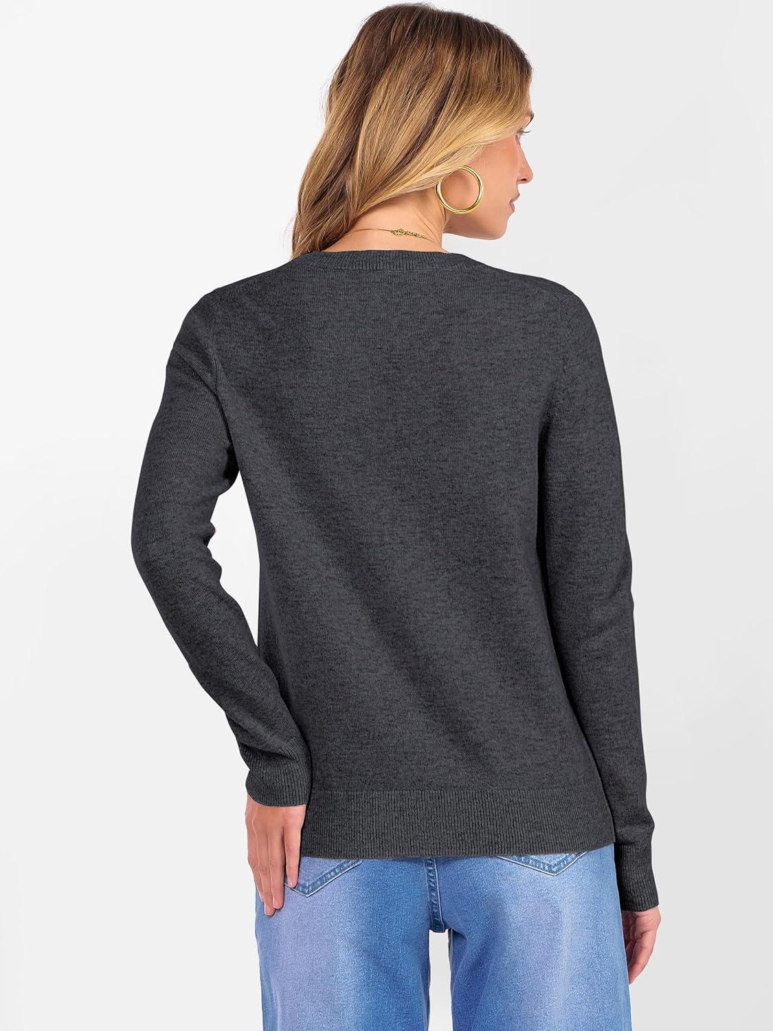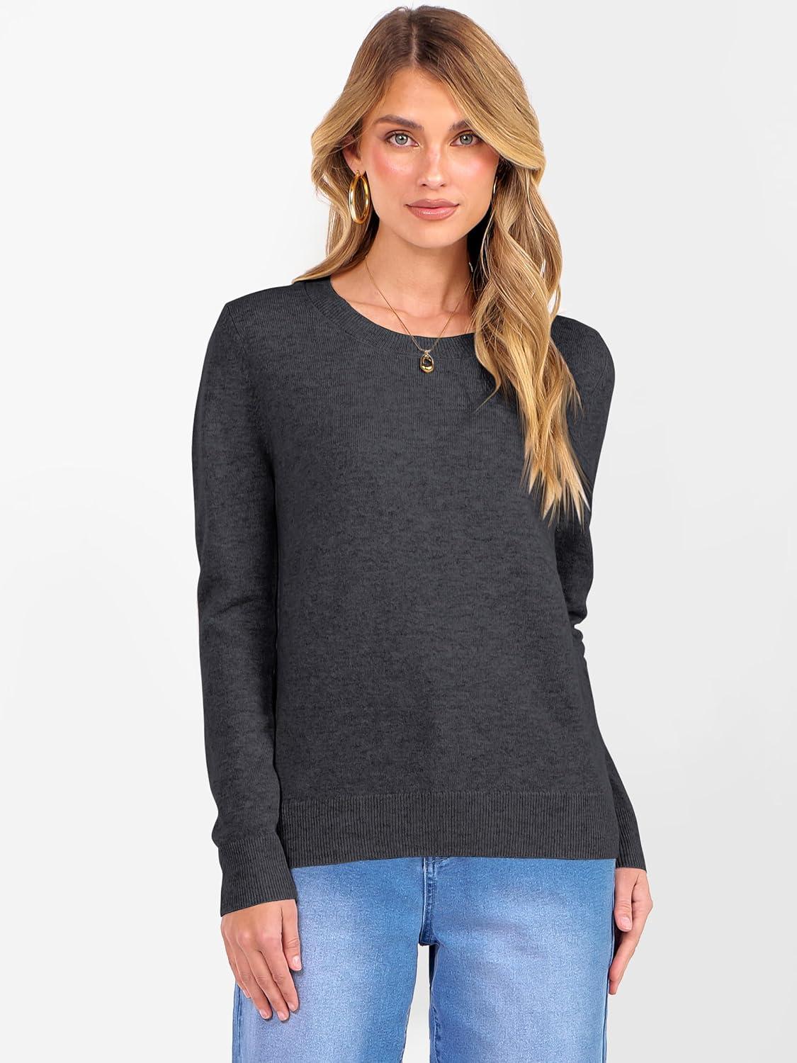 ANRABESS Womens 100% Wool Sweaters Crewneck Long Sleeve Work Business Casual Basic Sweater Tops 2025 Fall Outfits(Dark Gray)