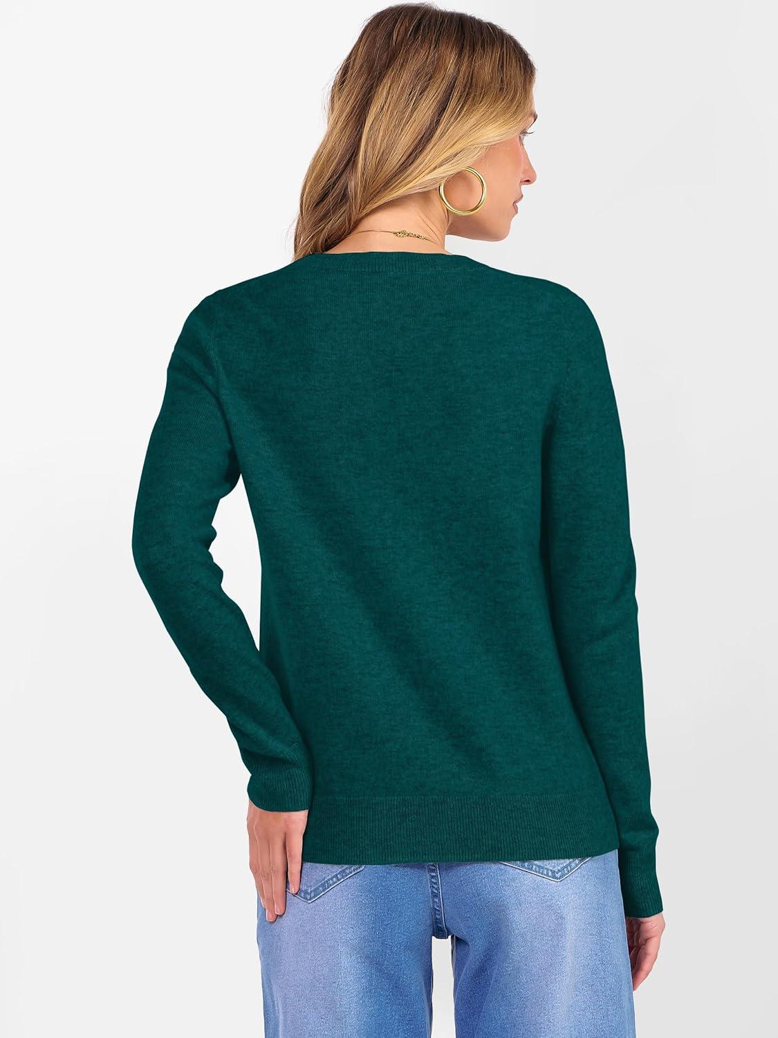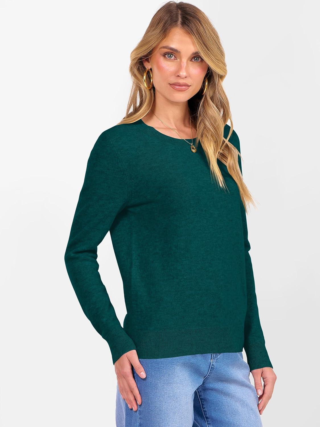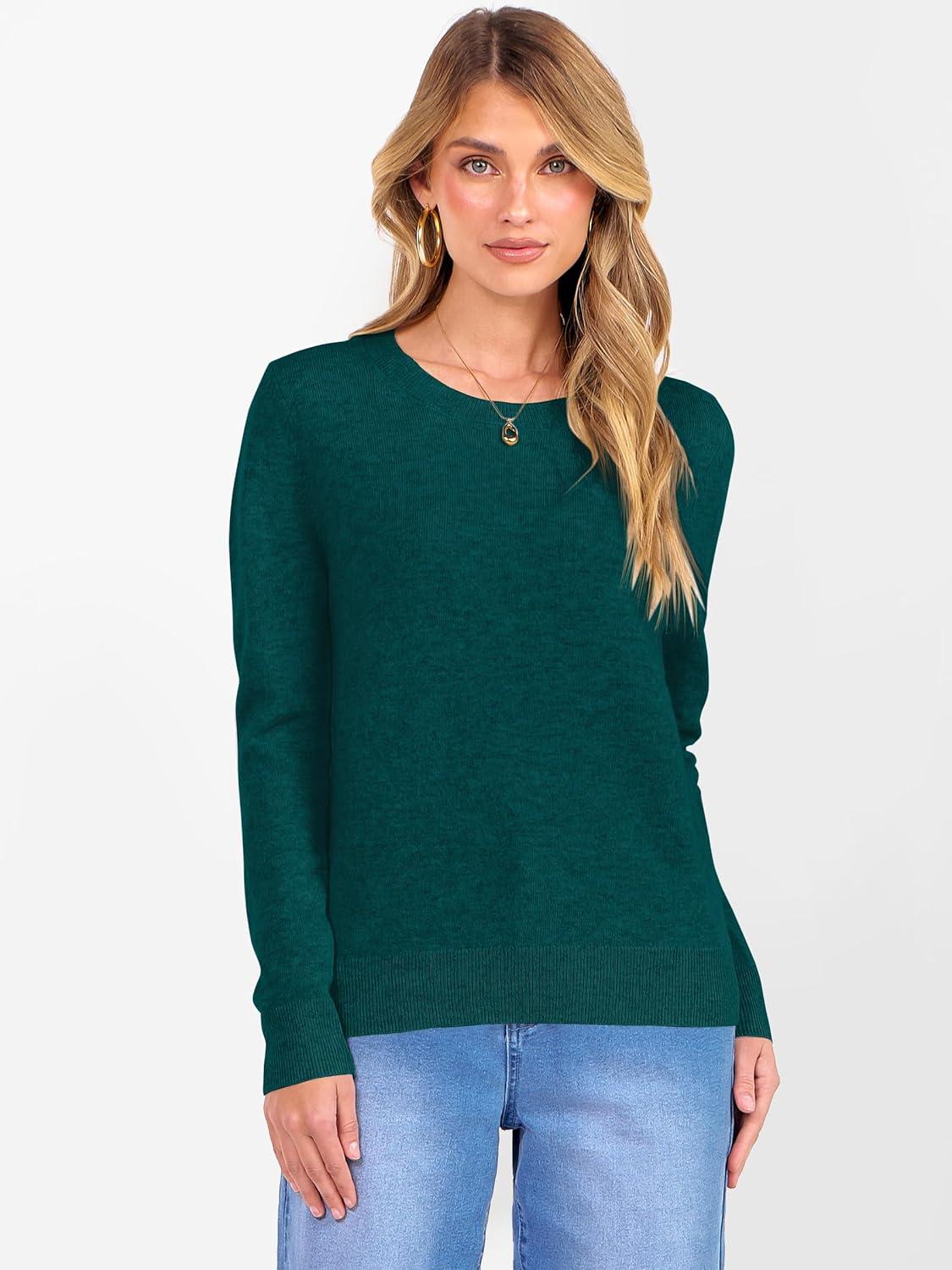 ANRABESS Womens 100% Wool Sweaters Crewneck Long Sleeve Work Business Casual Basic Sweater Tops 2025 Fall Outfits(Lake)