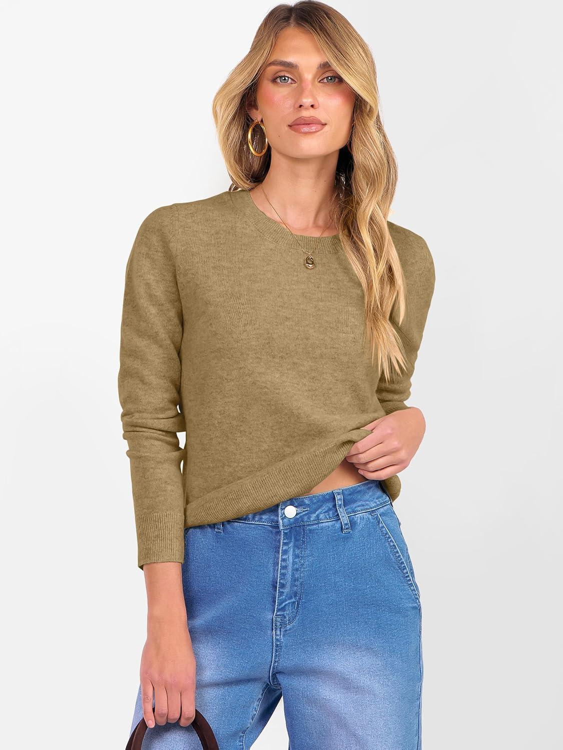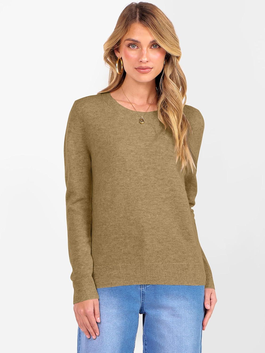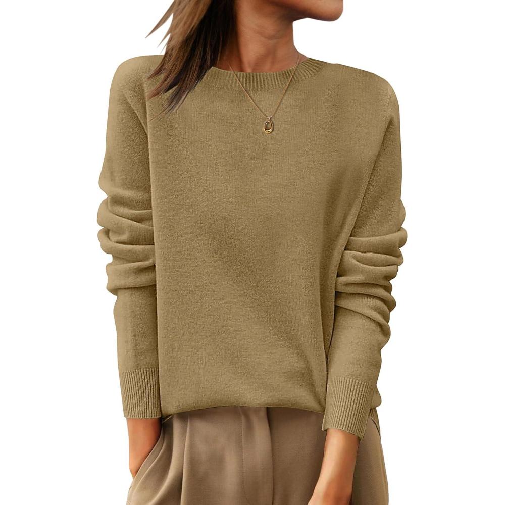ANRABESS Womens 100% Wool Sweaters Crewneck Long Sleeve Work Business Casual Basic Sweater Tops 2025 Fall Outfits(Tan)