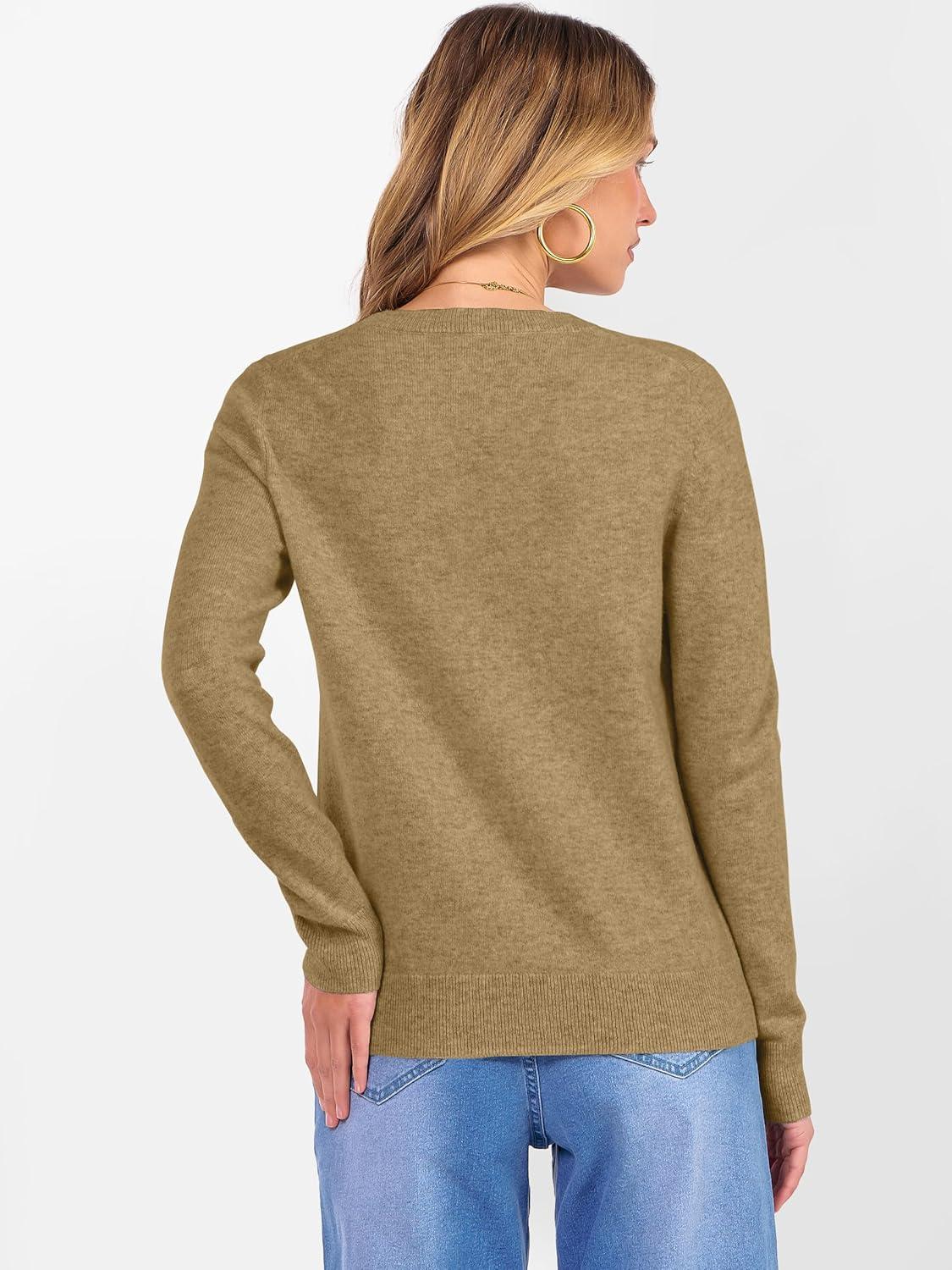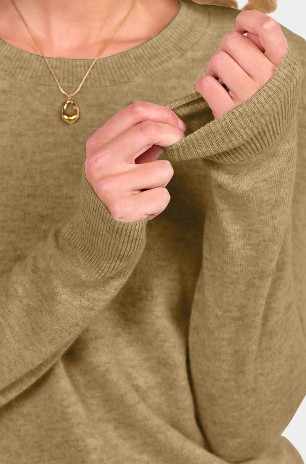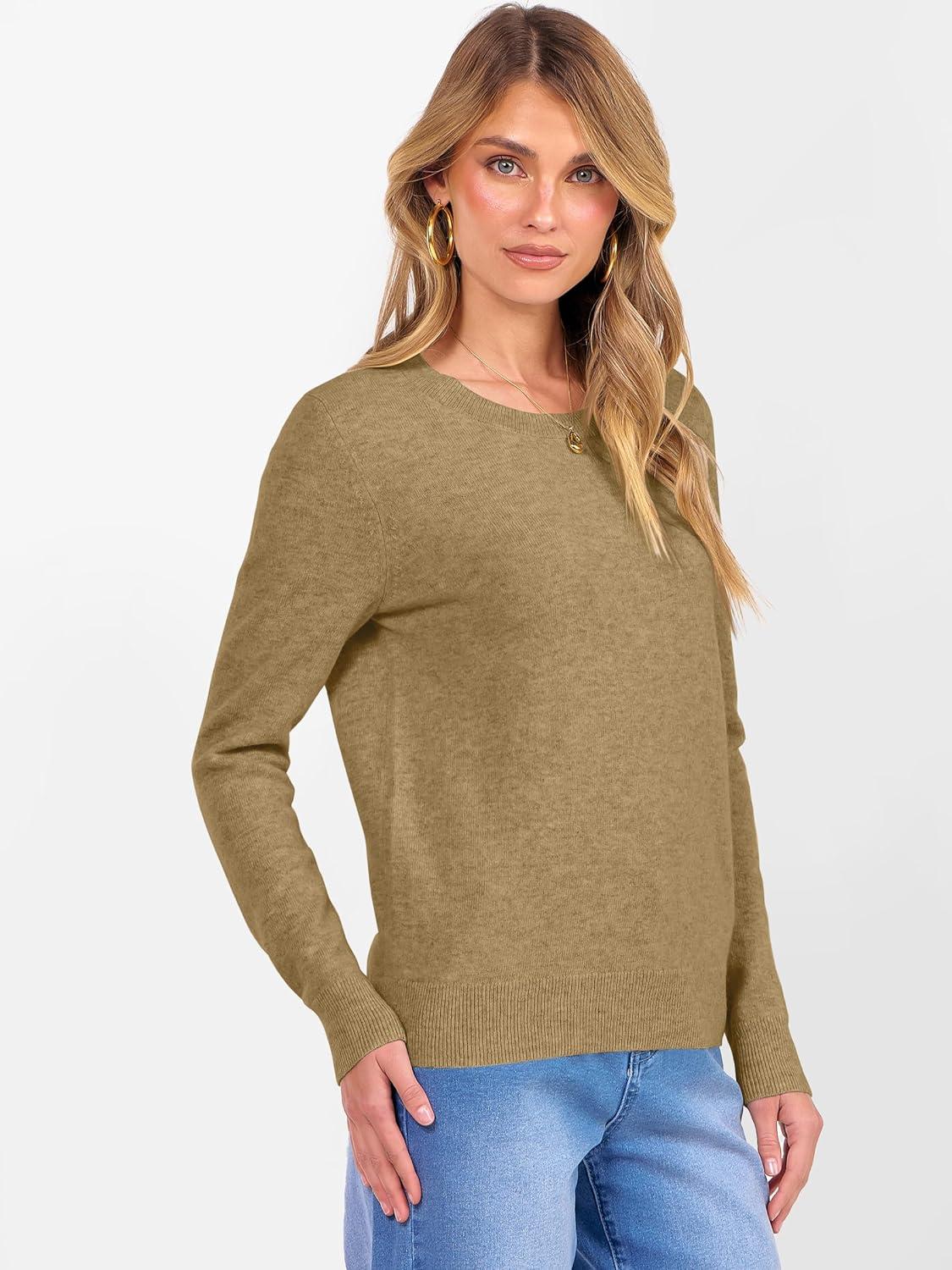ANRABESS Womens 100% Wool Sweaters Crewneck Long Sleeve Work Business Casual Basic Sweater Tops 2025 Fall Outfits(Tan)