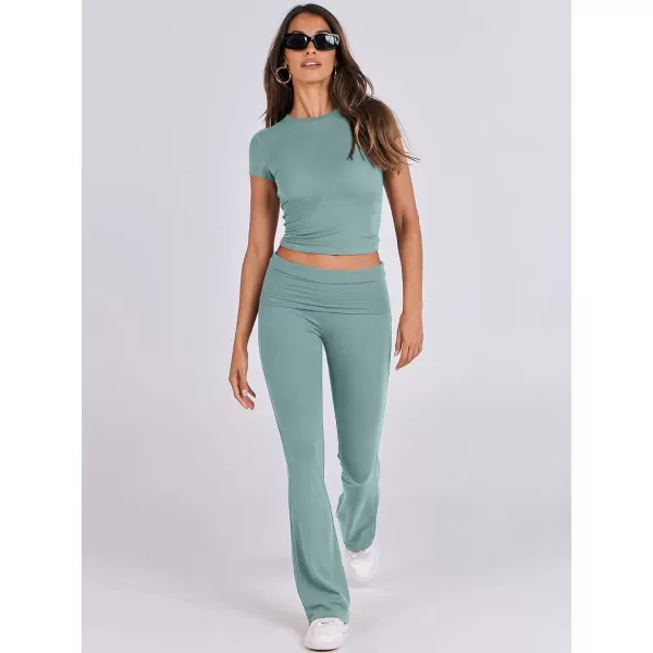Get a free gift with your purchase of ANRABESS Women’s 2 Piece Lounge Sets Fold-over Flare Pants Set Shorts Sleeve Y2K Cropped Top Casual Outfits Pajamas(Lake Green). Limited quantities available!