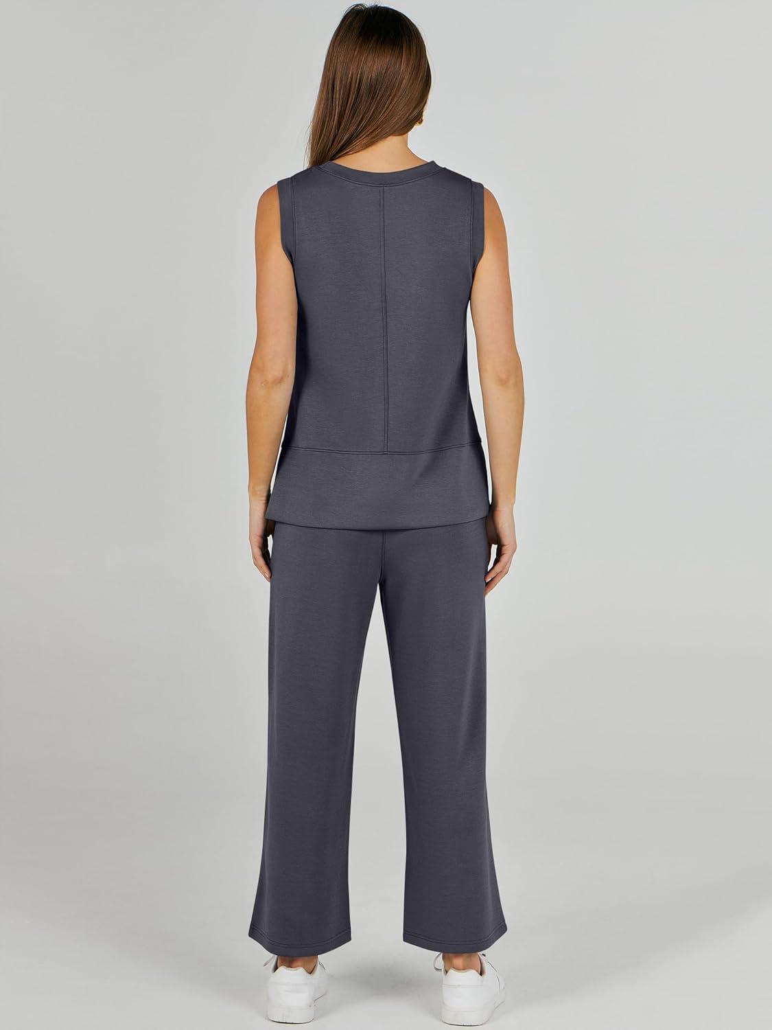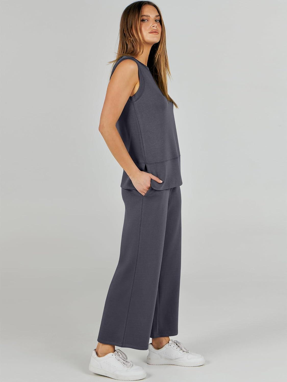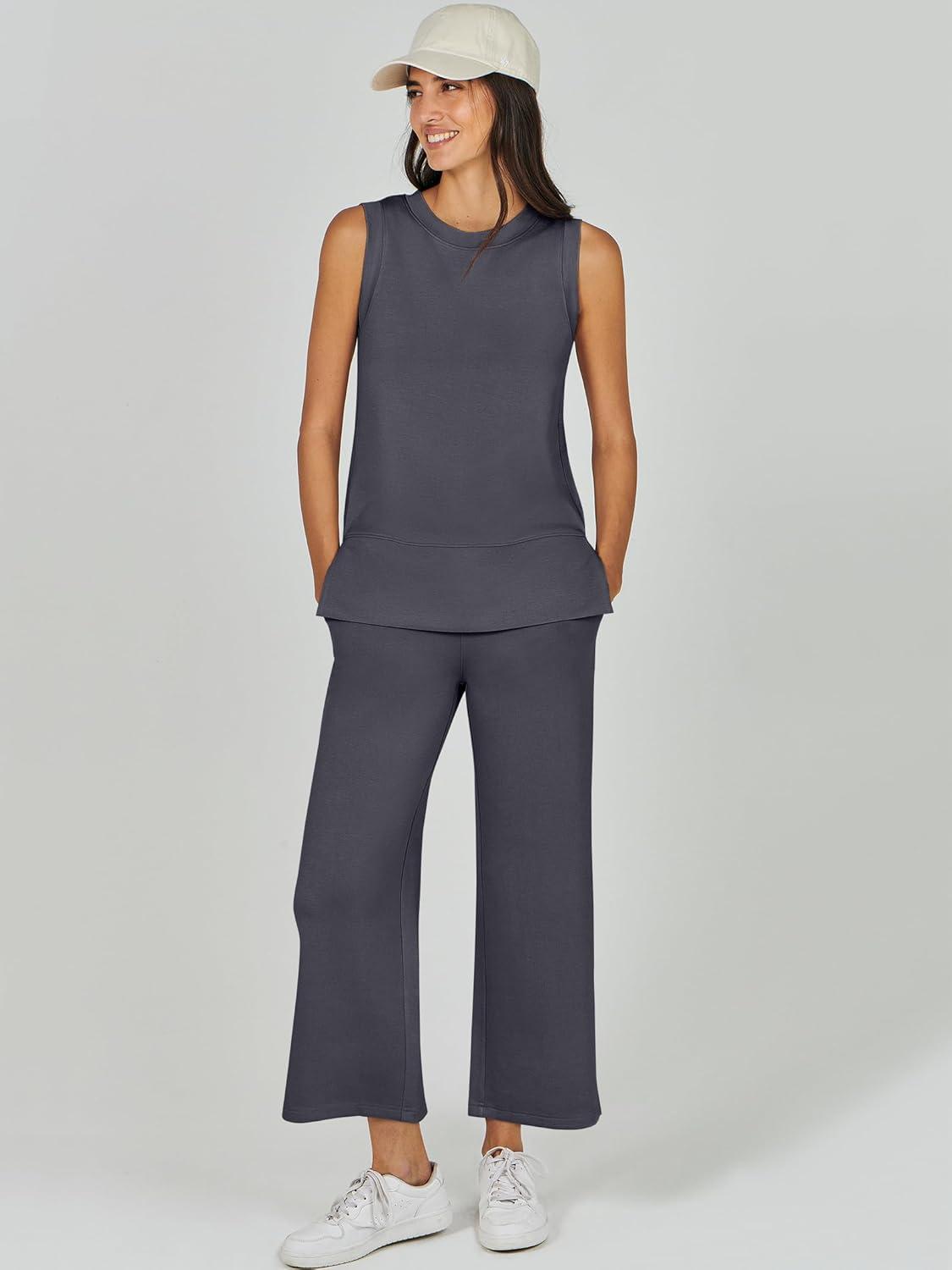 ANRABESS Women’s 2 Piece Outfits 2025 Summer Beach Vacation Clothes Fall Travel Casual Lounge Matching Sets Sweatsuits(Dark Grey)