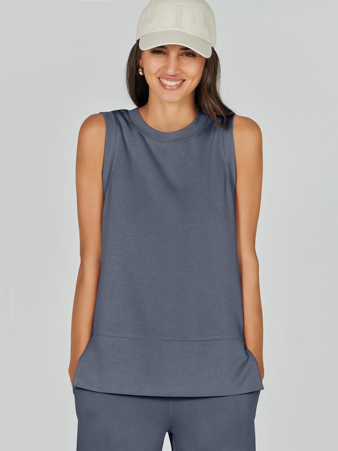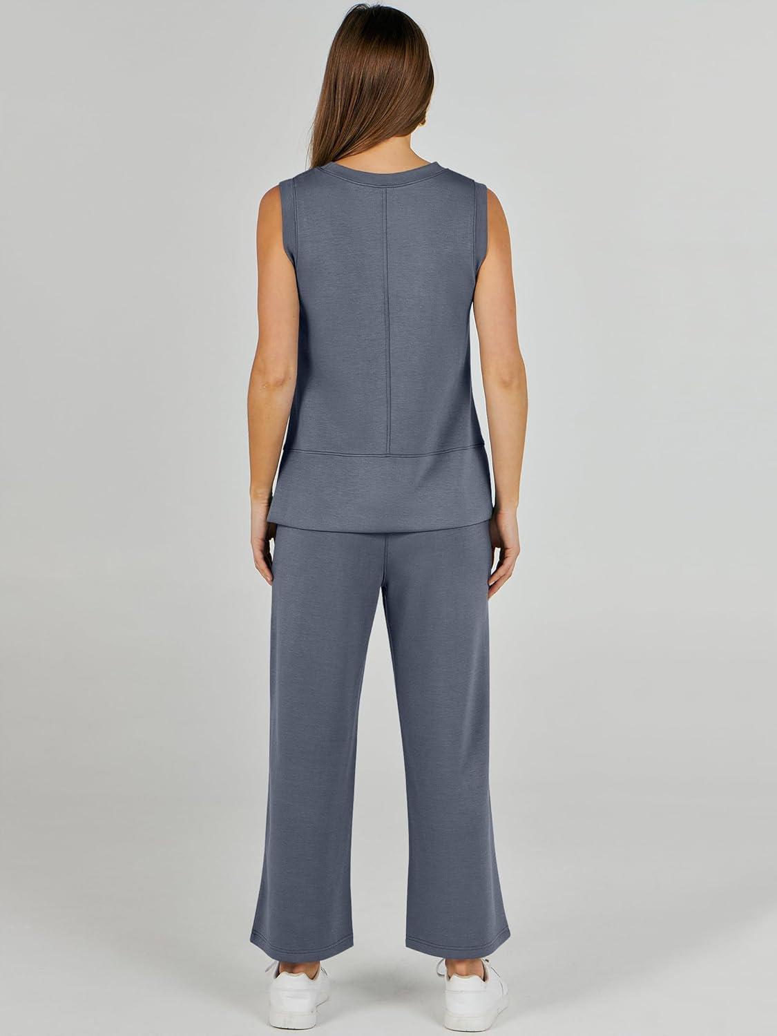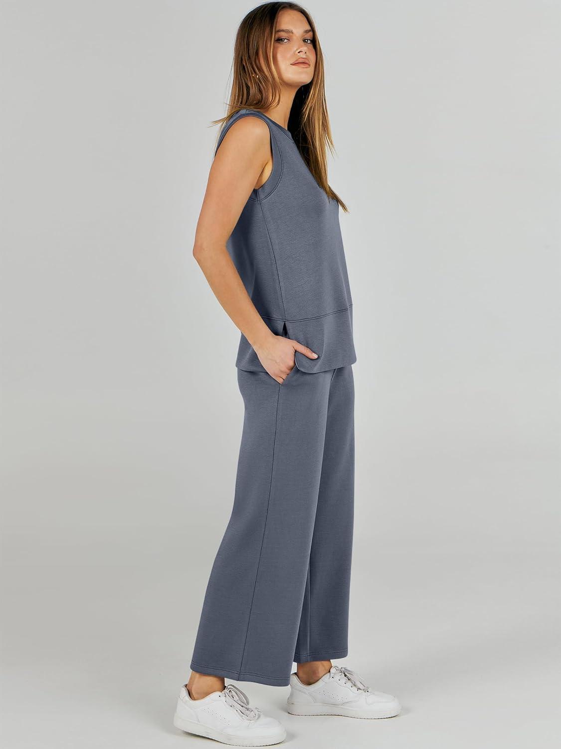 ANRABESS Women’s 2 Piece Outfits 2025 Summer Beach Vacation Clothes Fall Travel Casual Lounge Matching Sets Sweatsuits(Grey Blue)