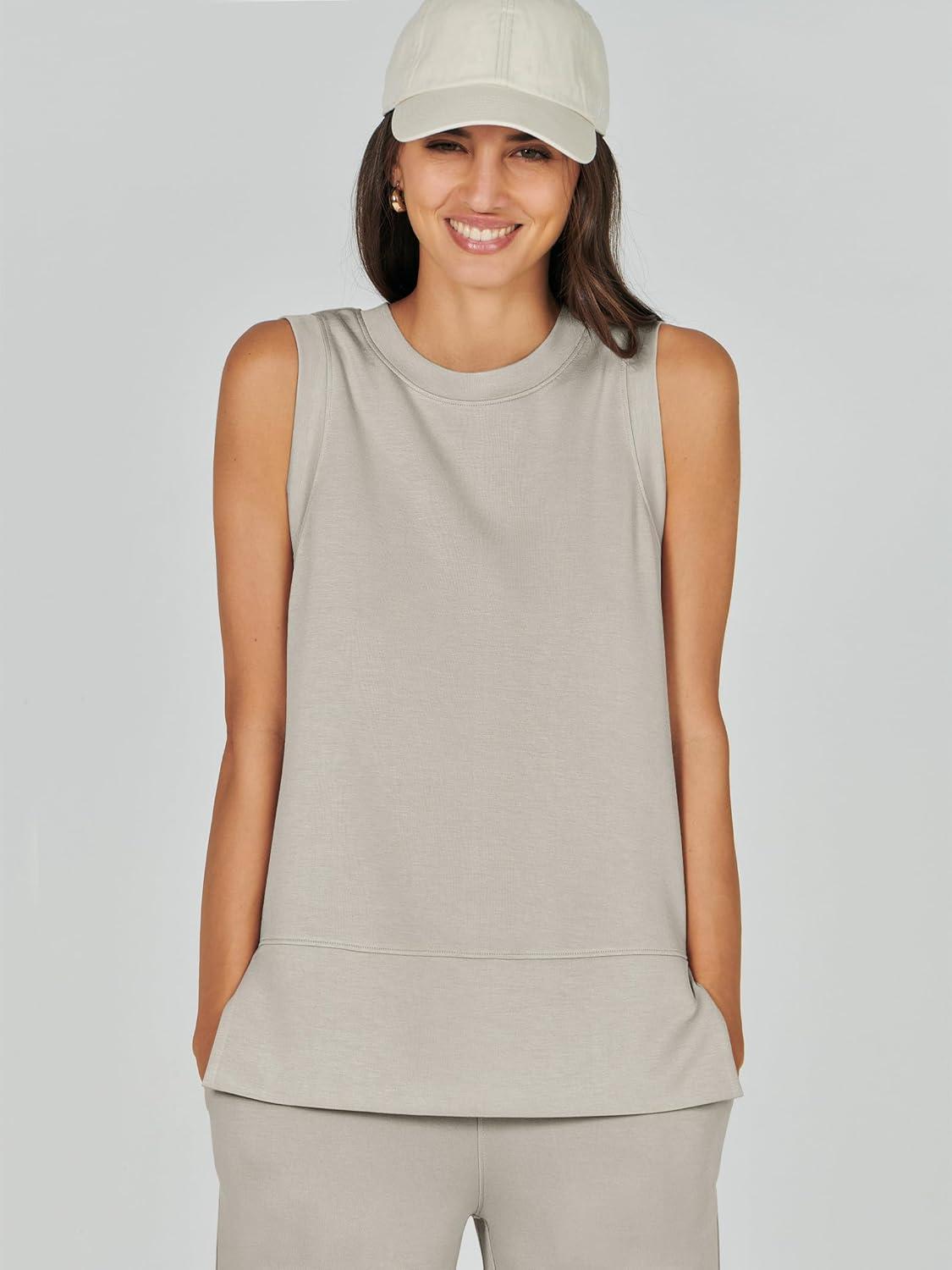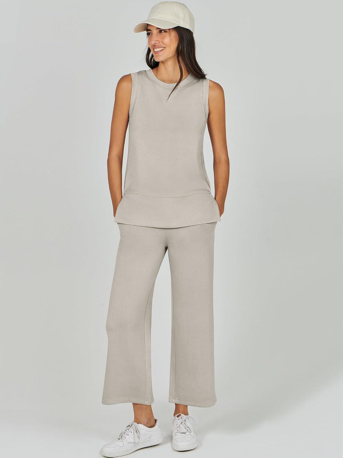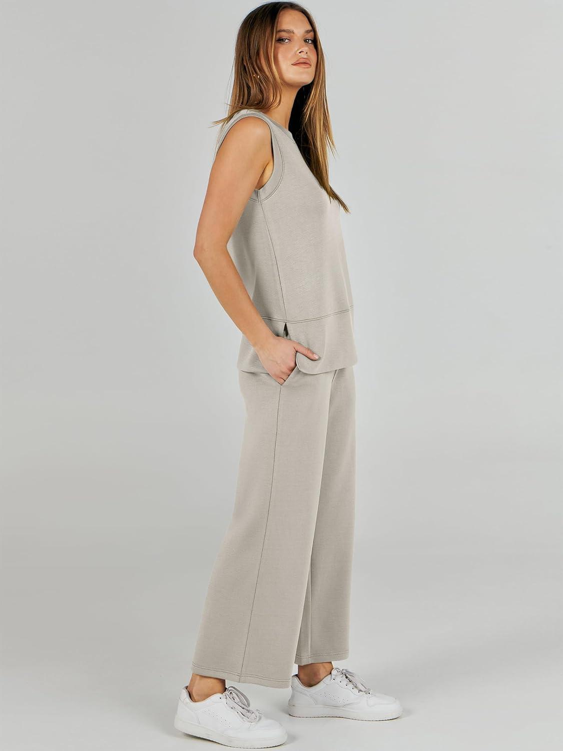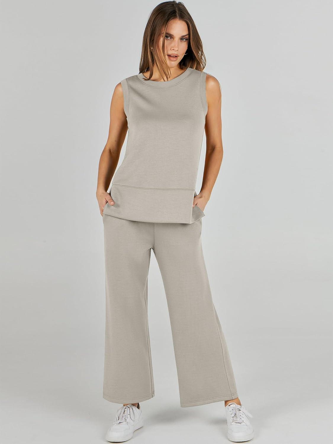 ANRABESS Women’s 2 Piece Outfits 2025 Summer Beach Vacation Clothes Fall Travel Casual Lounge Matching Sets Sweatsuits(Light Beige)