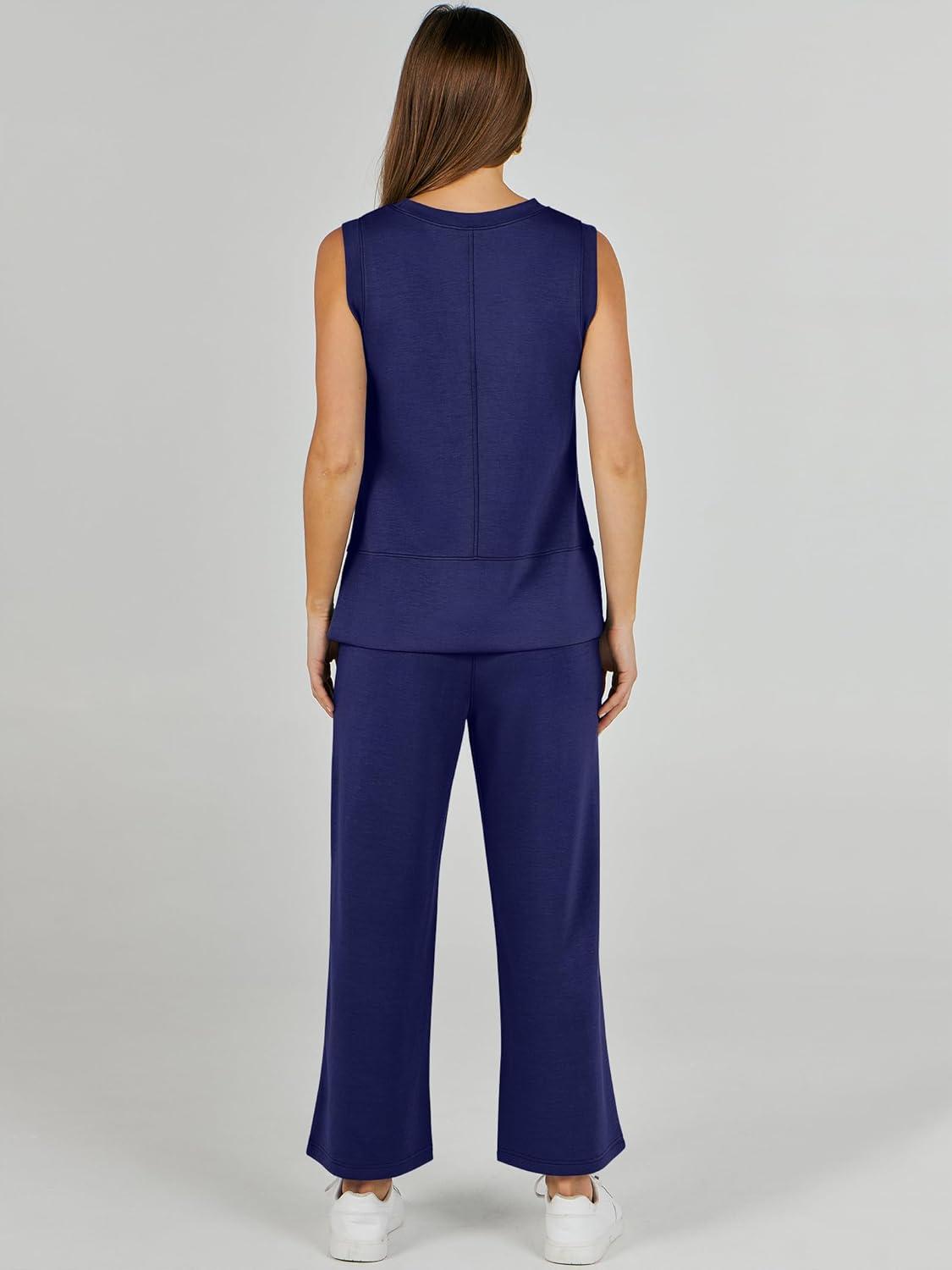 ANRABESS Women’s 2 Piece Outfits 2025 Summer Beach Vacation Clothes Fall Travel Casual Lounge Matching Sets Sweatsuits(Navy)