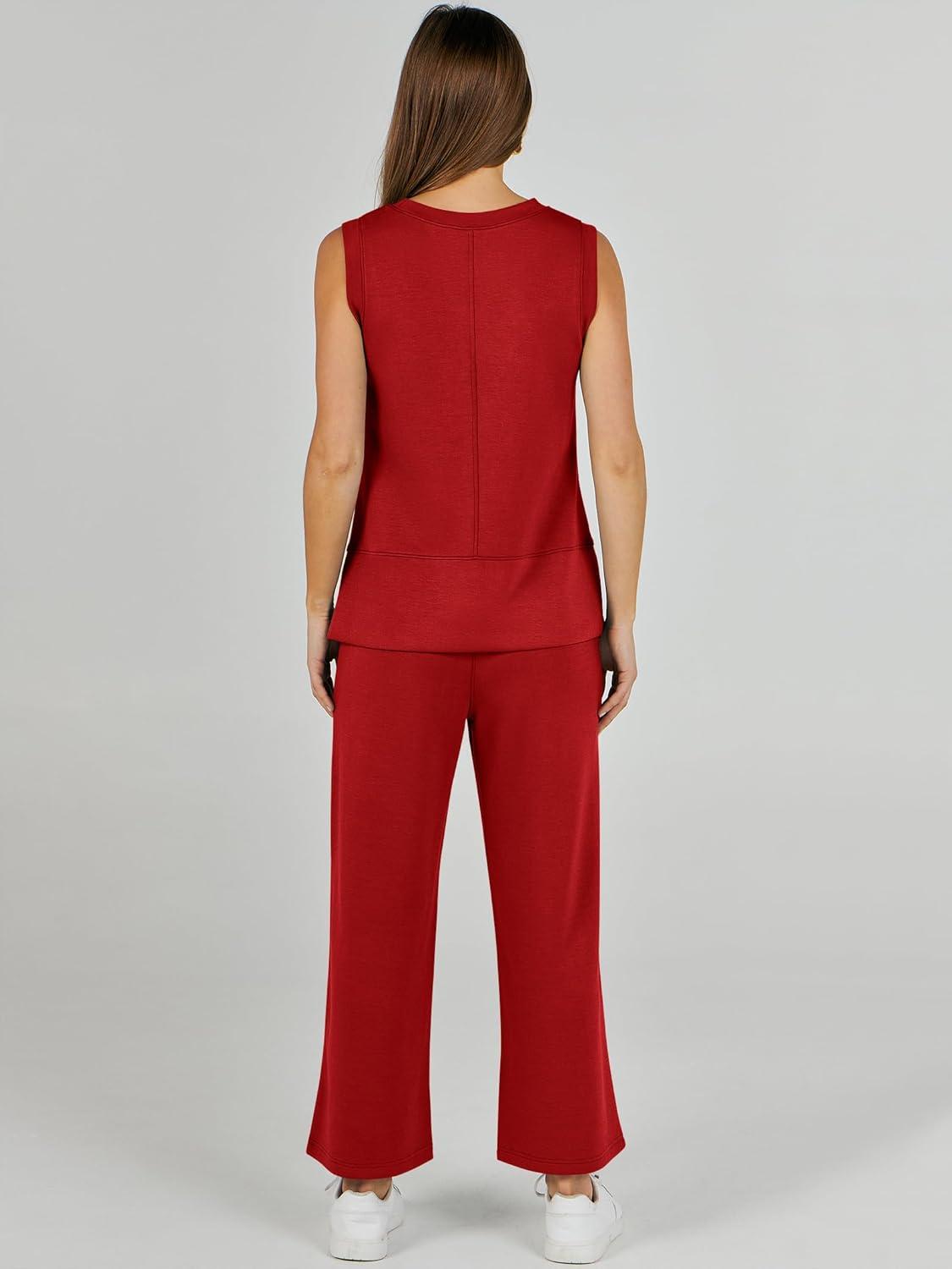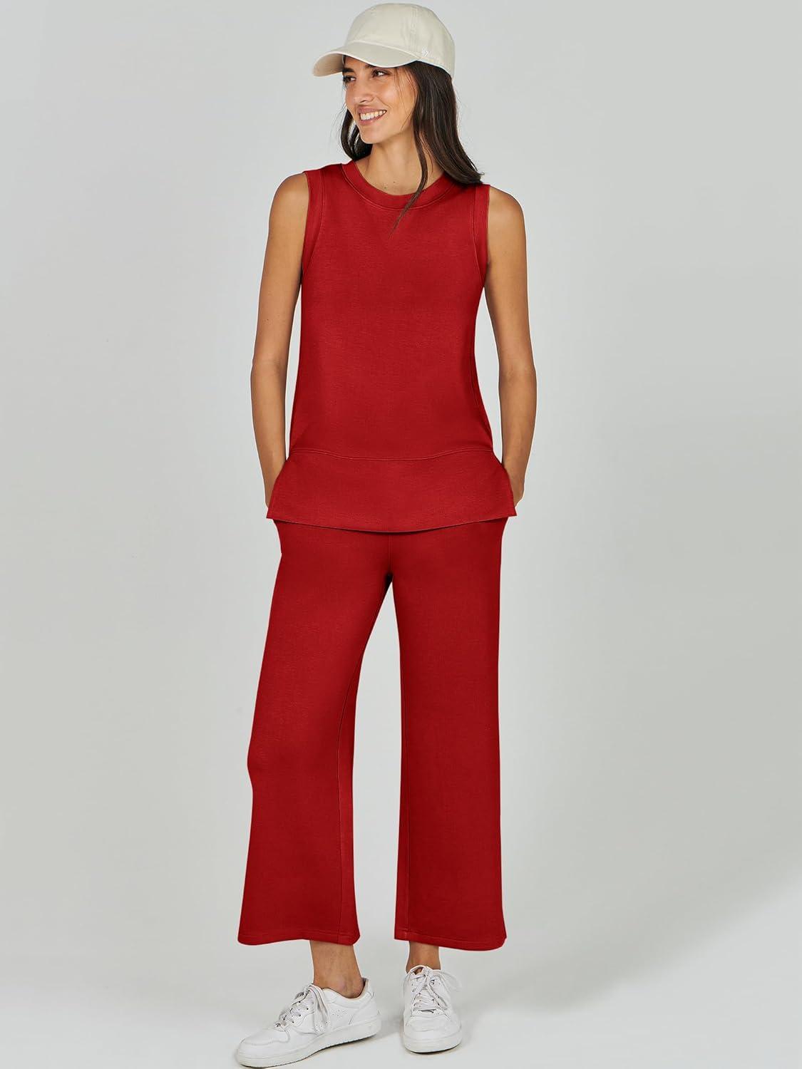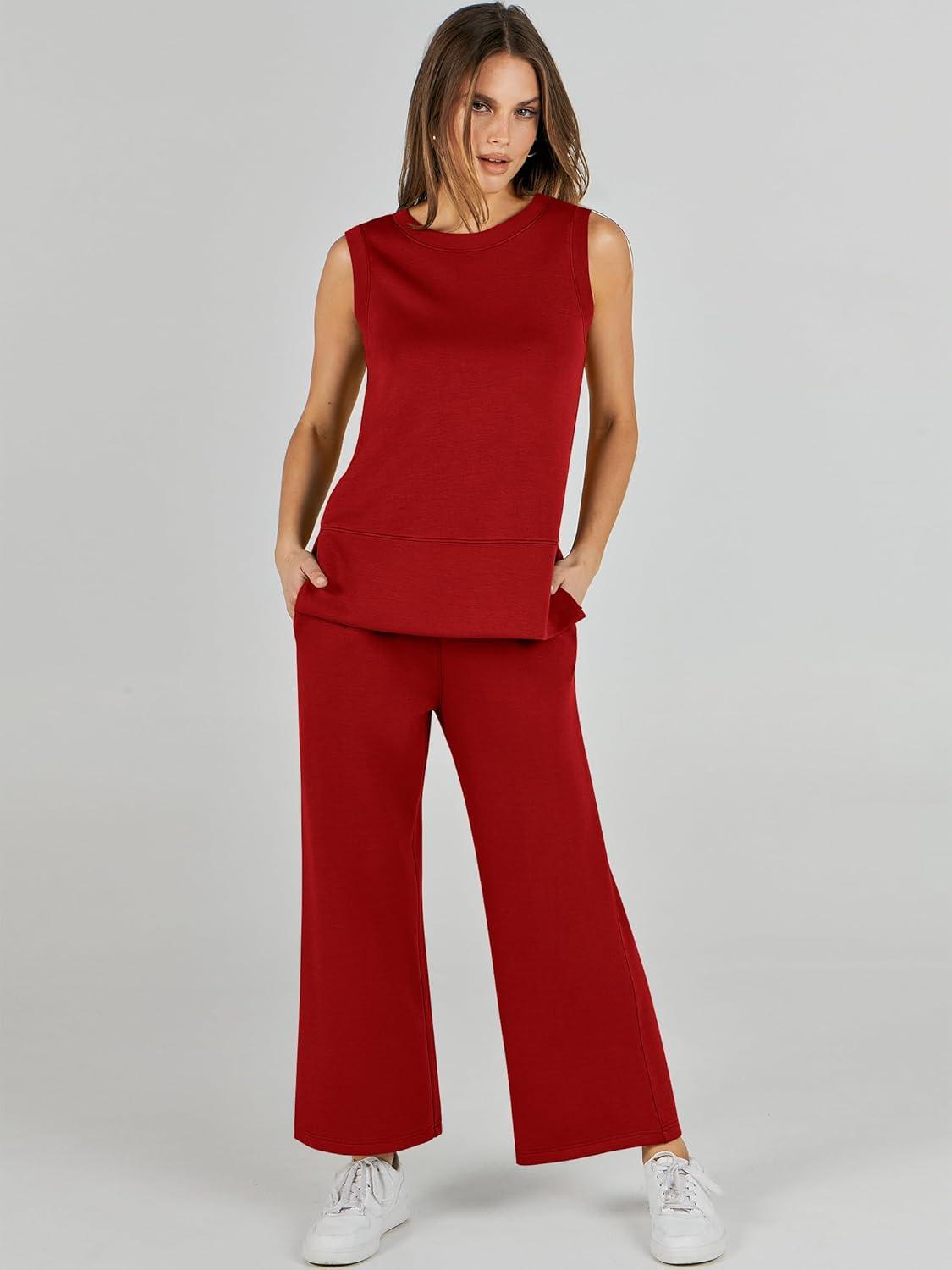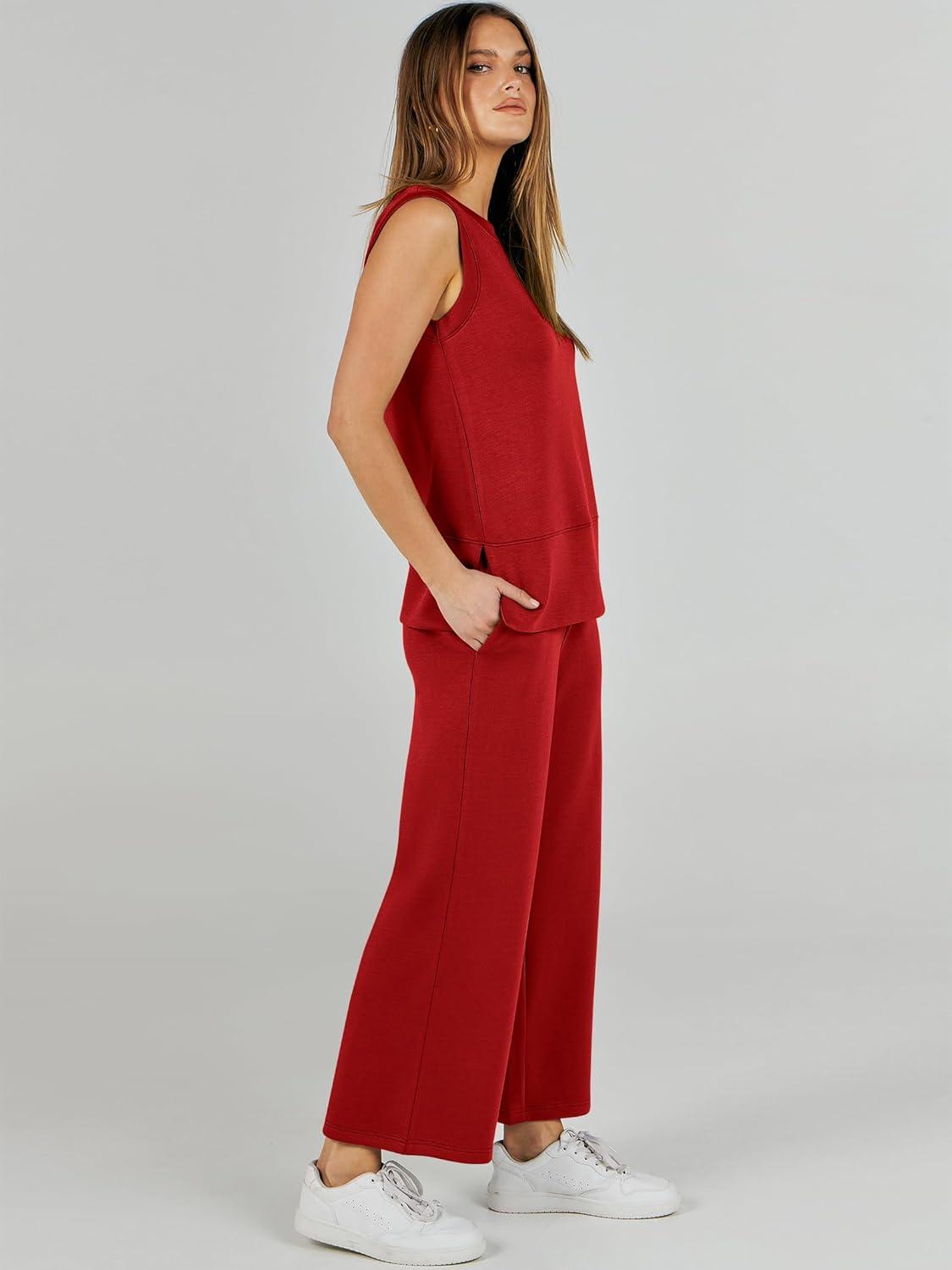 ANRABESS Women’s 2 Piece Outfits 2025 Summer Beach Vacation Clothes Fall Travel Casual Lounge Matching Sets Sweatsuits(Red)