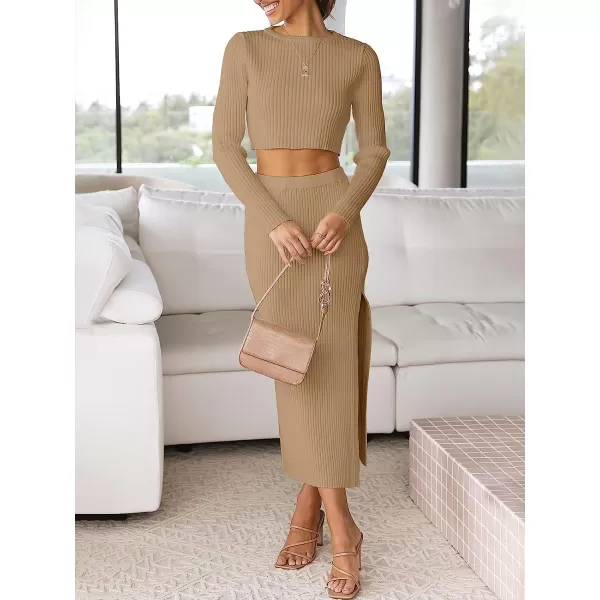 Features – this sweater dress made 2 piece long sleeve round neck crop top and slit side skirt,warm sweater ribbed knit fabric perfect for fall and winter.