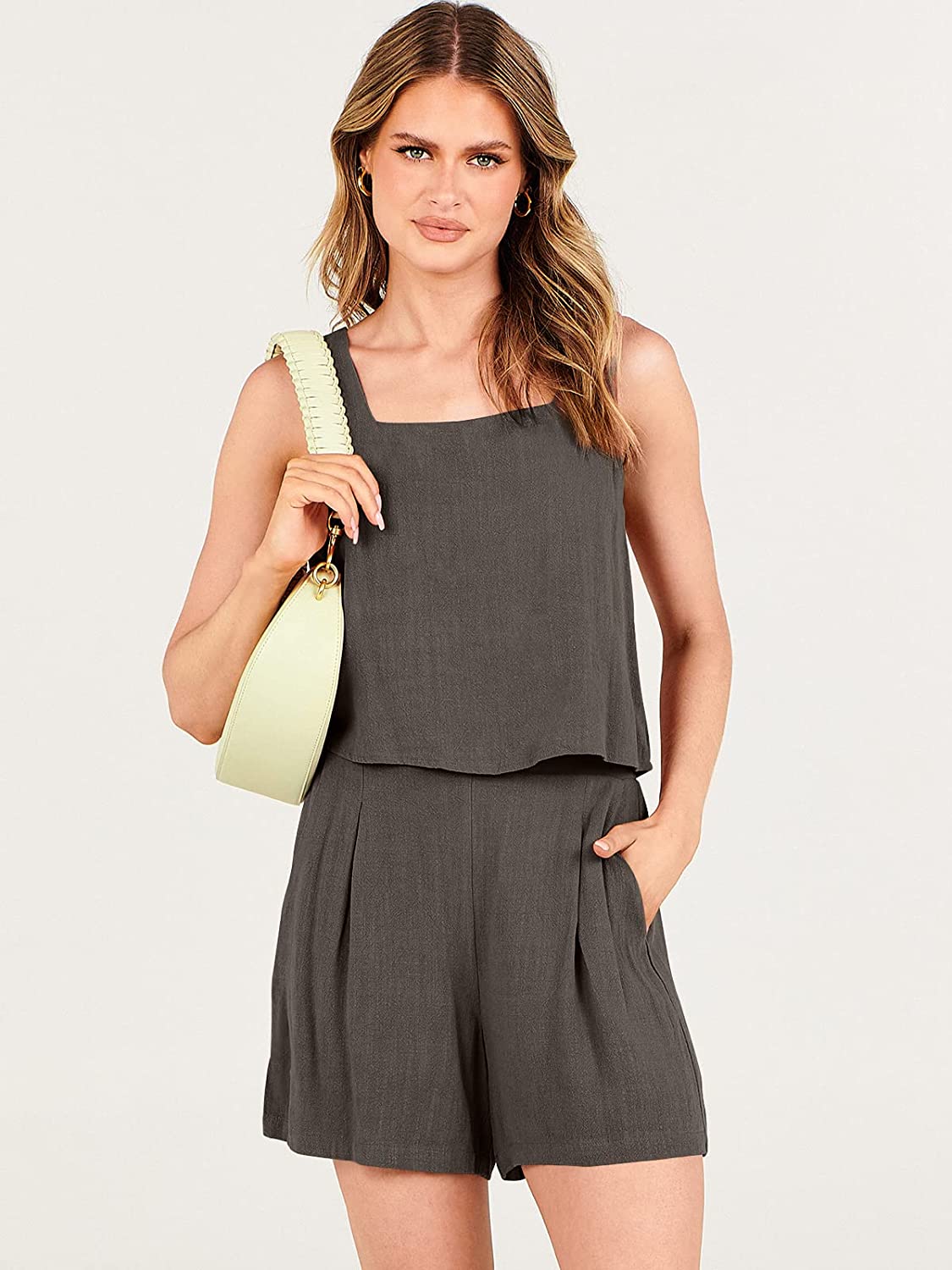 Versatile Style – Our sleeveless romper and matching high-waisted shorts are designed for ultimate comfort and style. With a relaxed fit, square neck, and solid colors, these two-piece outfits are perfect for a variety of occasions, from casual daily wear to outdoor activities and parties.