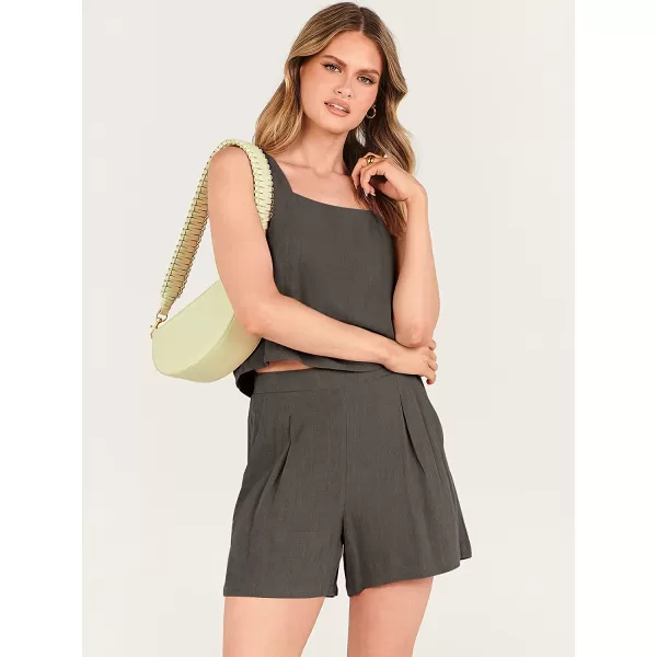 ANRABESS Womens 2 Piece Outfits Linen Square Neck Crop Short Set Lounge Matching Sets 2023 Trendy Clothes Beach Summer(Deep Gray)