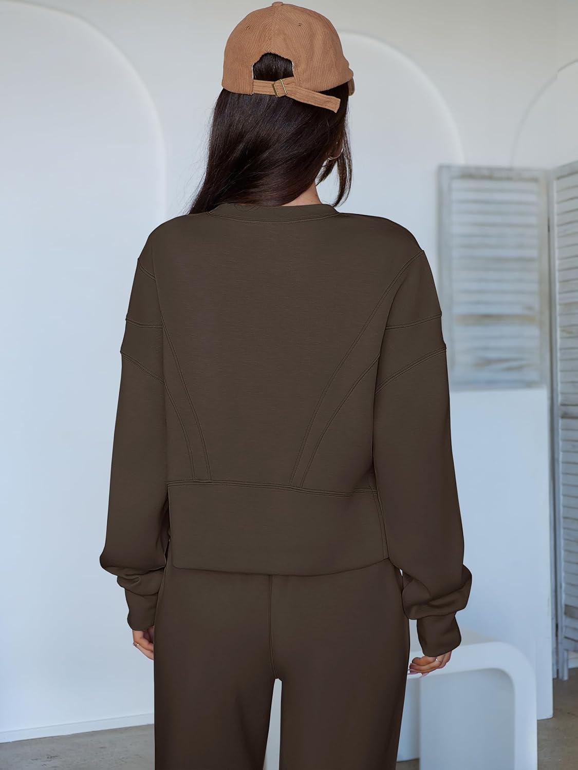 ANRABESS Womens 2 Piece Outfits Lounge Sets Cropped Sweatshirt Joggers Fashion Sweatsuit Sweat Set 2025 Winter Travel Outfits(Coffee)