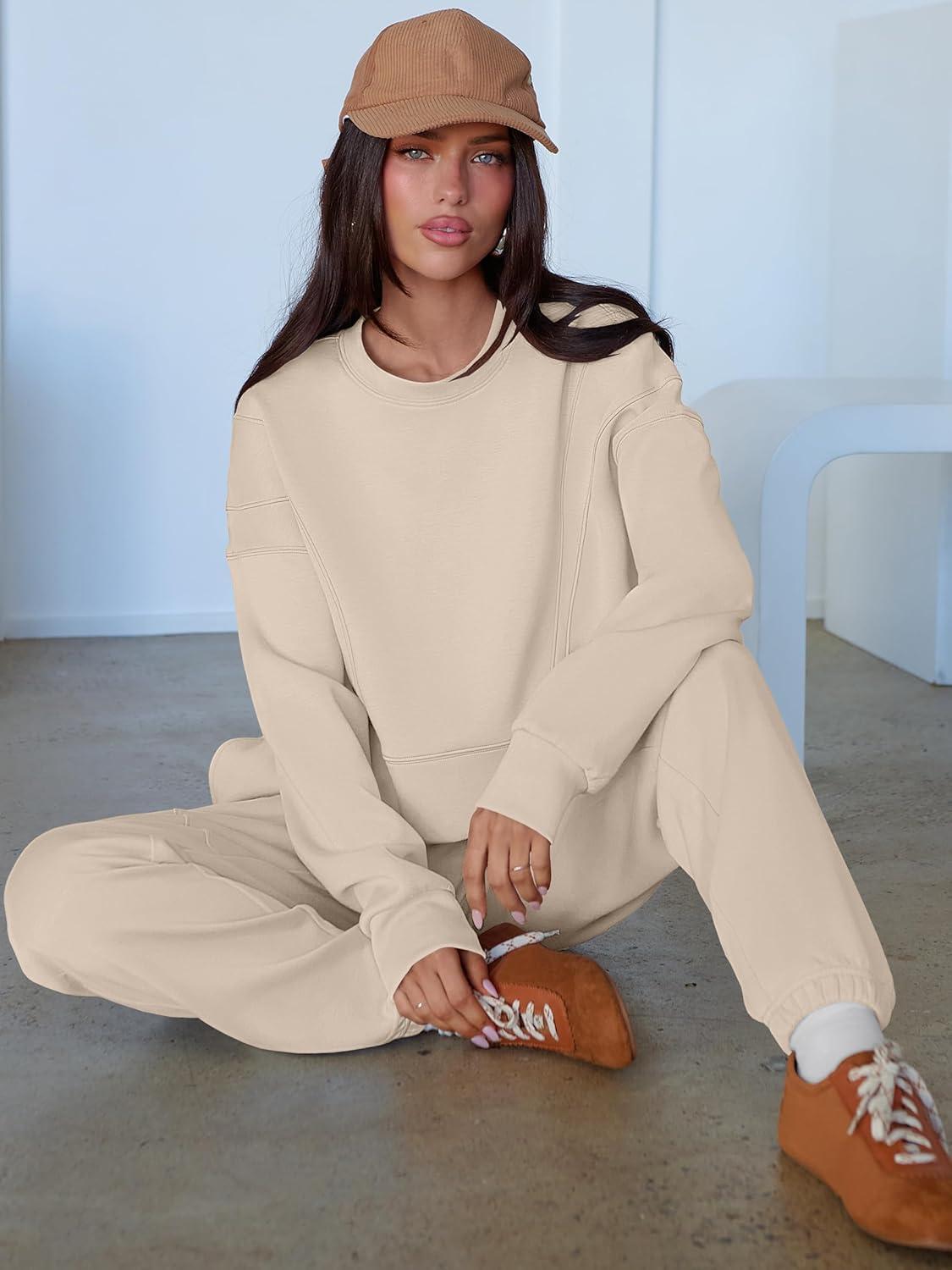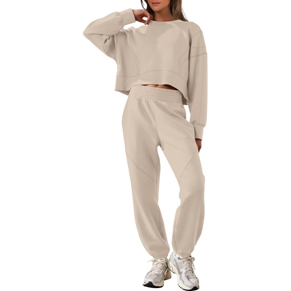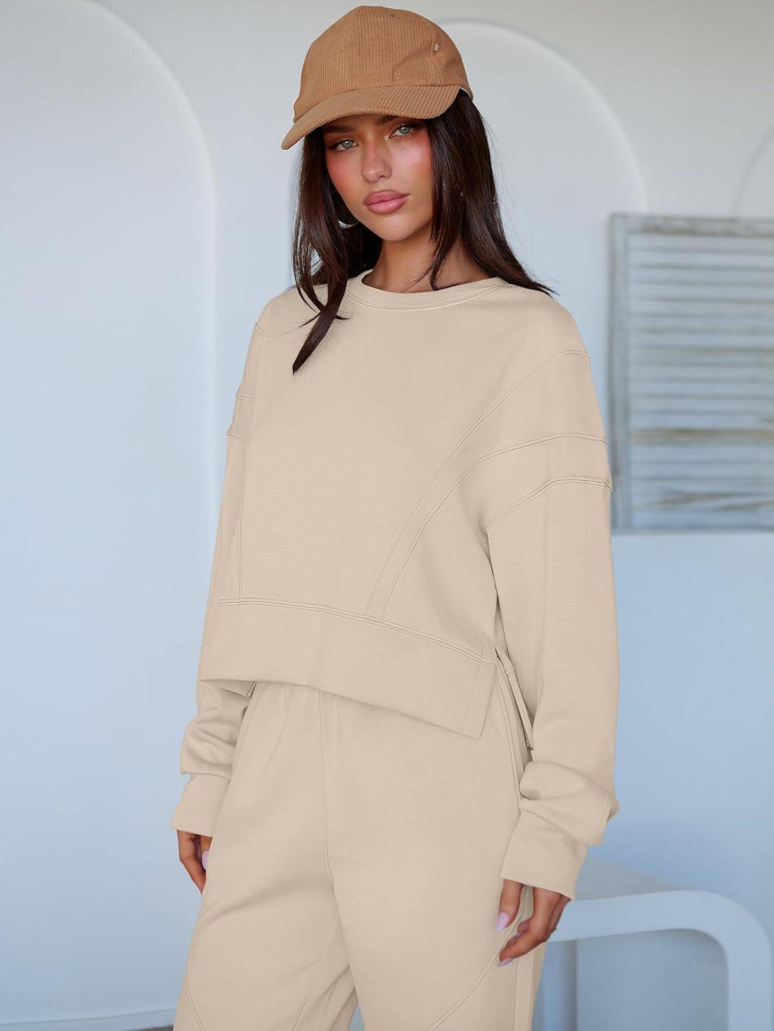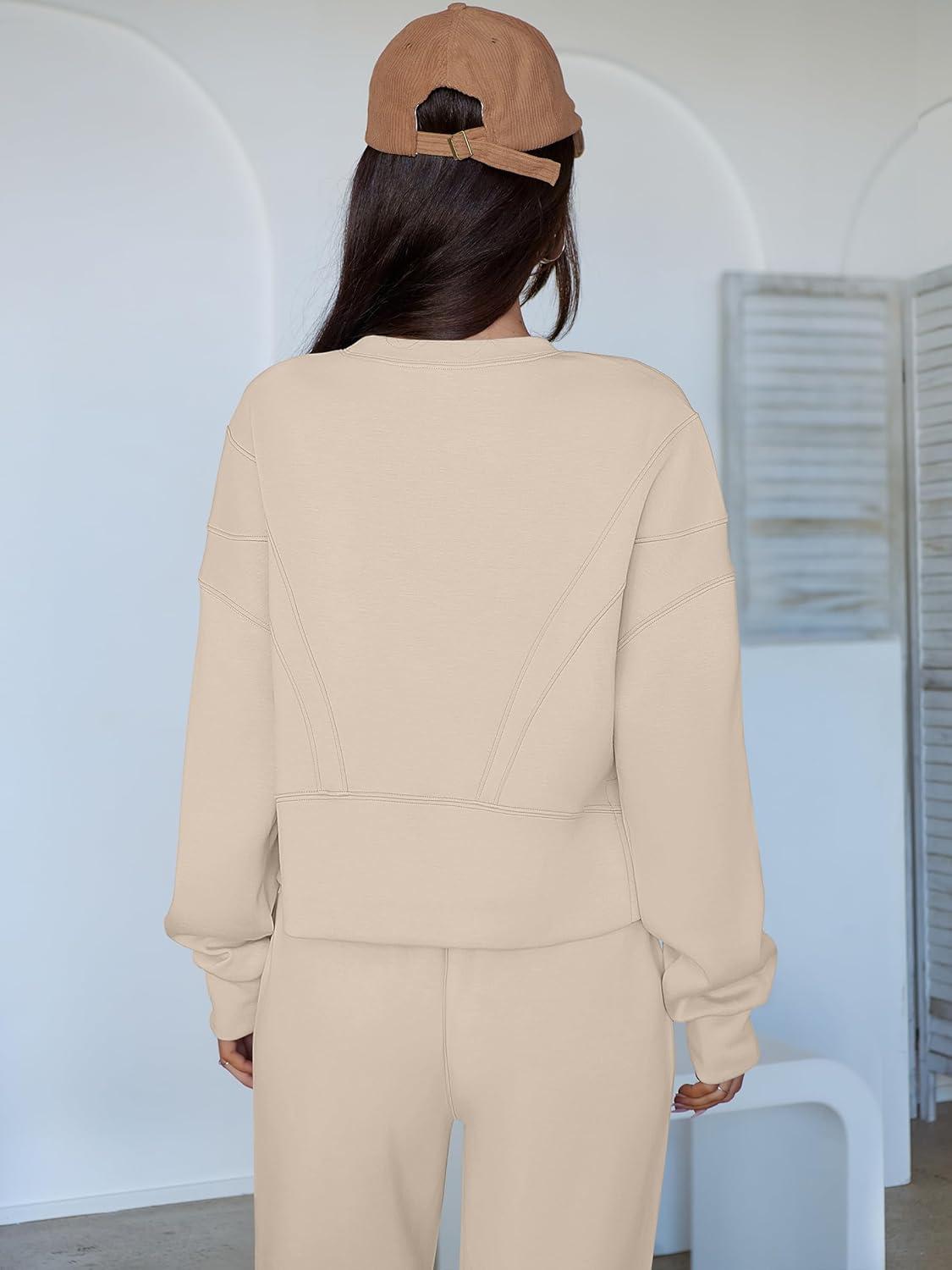 ANRABESS Womens 2 Piece Outfits Lounge Sets Cropped Sweatshirt Joggers Fashion Sweatsuit Sweat Set 2025 Winter Travel Outfits(Lighter Khaki)