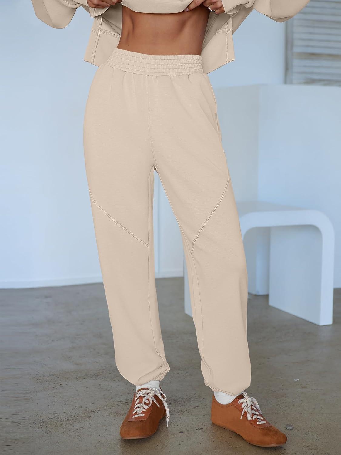 imageANRABESS Womens 2 Piece Outfits Lounge Sets Cropped Sweatshirt Joggers Fashion Sweatsuit Sweat Set 2025 Winter Travel OutfitsLighter Khaki