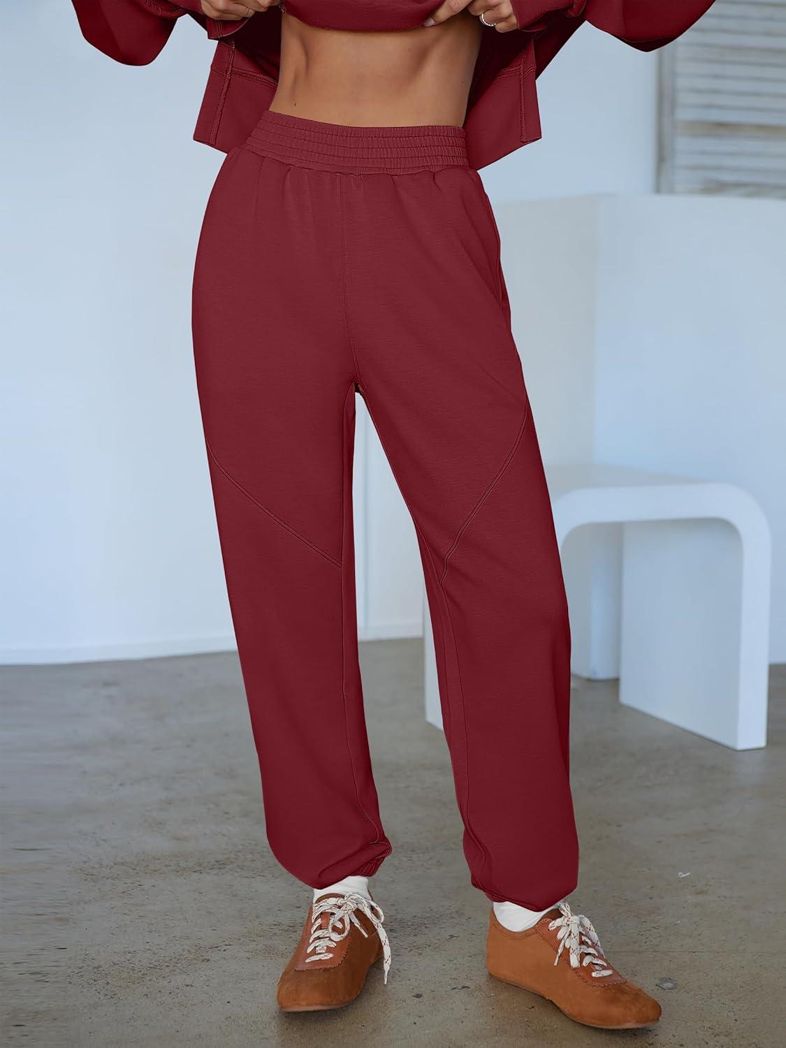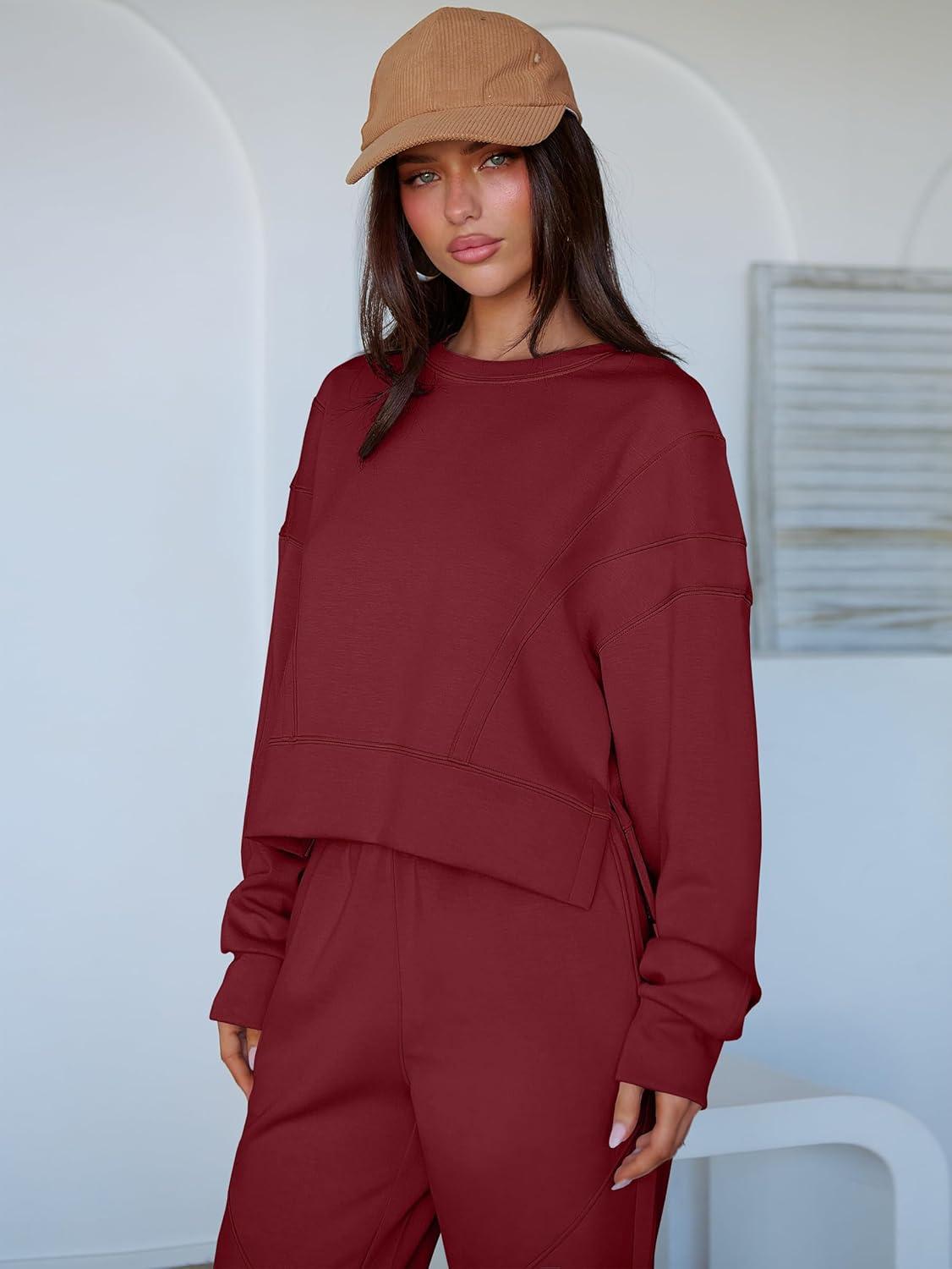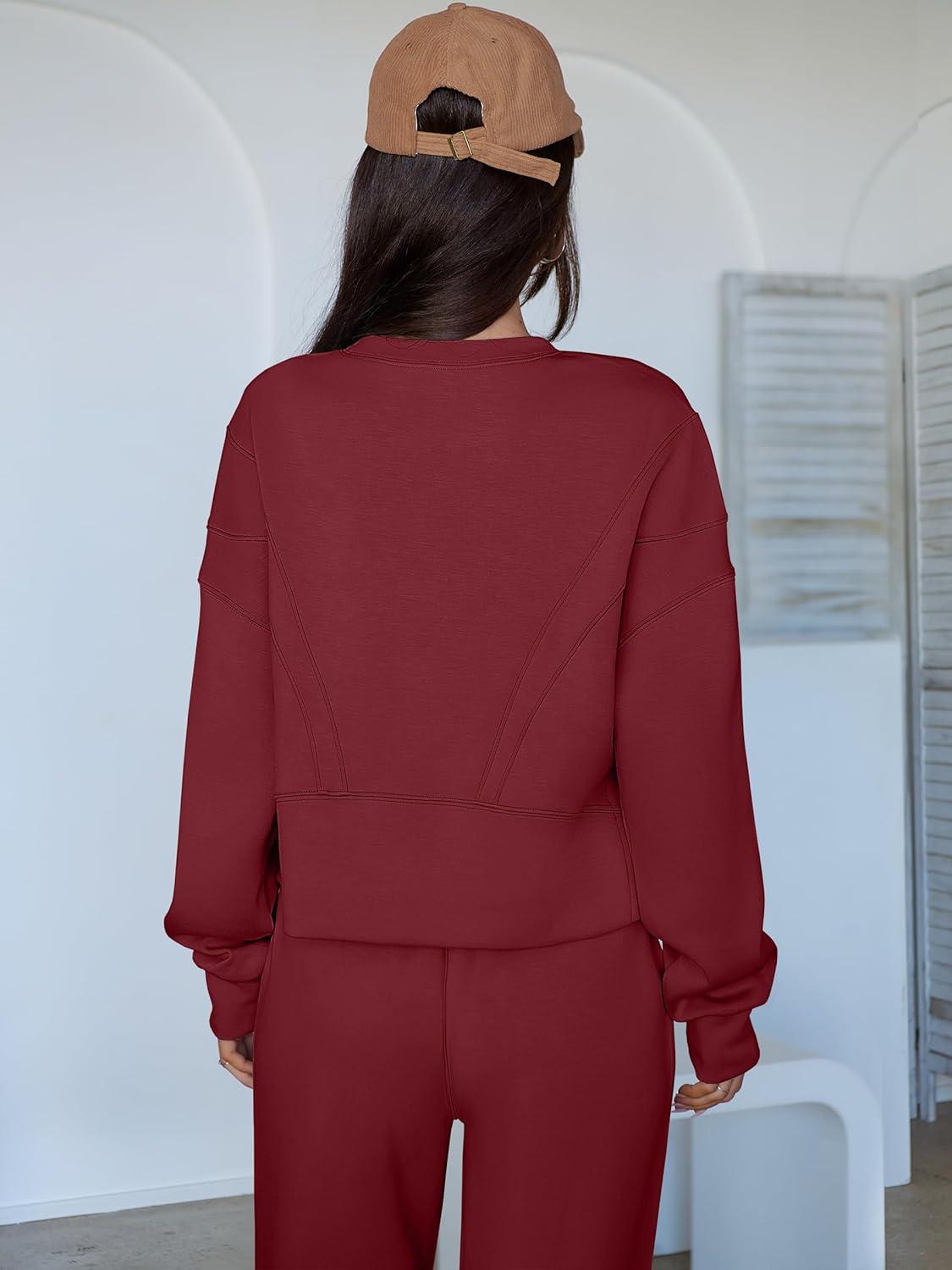 ANRABESS Womens 2 Piece Outfits Lounge Sets Cropped Sweatshirt Joggers Fashion Sweatsuit Sweat Set 2025 Winter Travel Outfits(Wine Red)