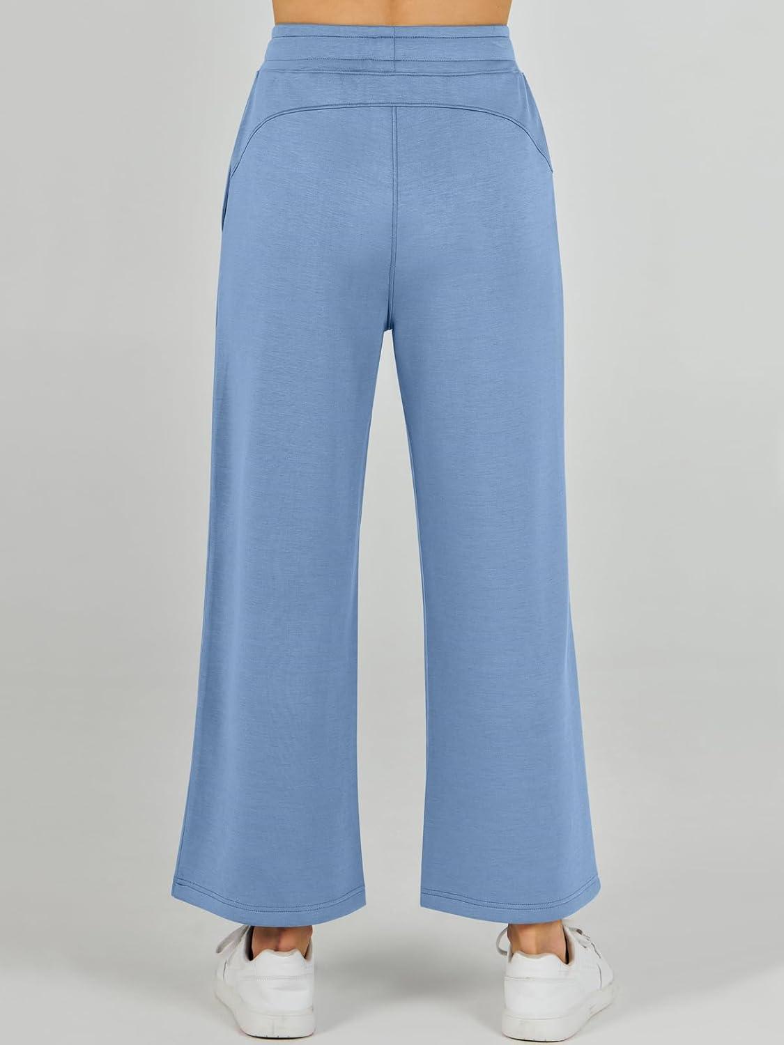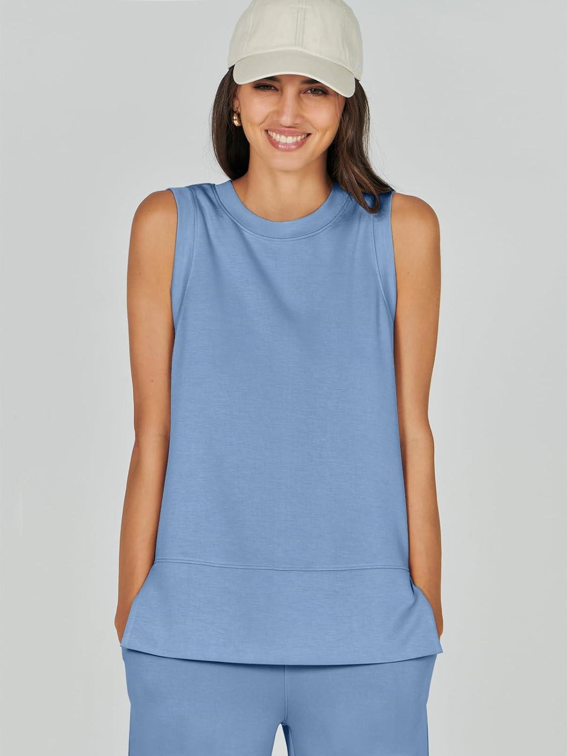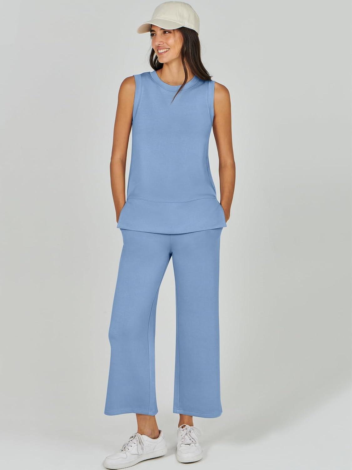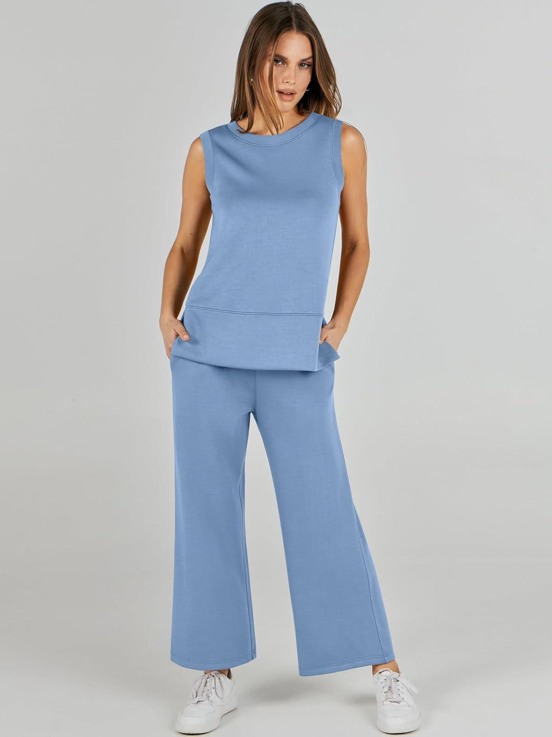ANRABESS Women's 2 Piece Sets Summer Travel Airplane Outfits Sleeveless Wide Leg Casual Lounge Matching Sweat Set Sweatsuits(Blue)