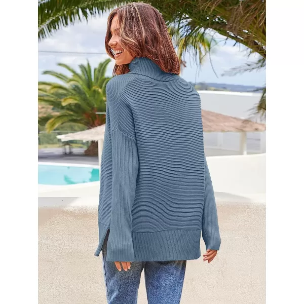 ANRABESS Womens 2022 Fall Sweaters Turtleneck Long Batwing Sleeve Spilt Hem Pullover Knit Sweater Tops(Indigo)