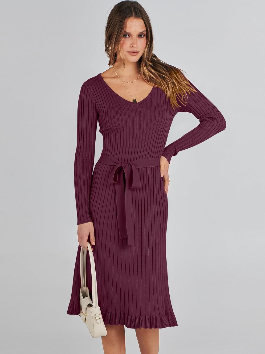 Chic design – Our ANRABESS sweater dress boasts a cute v-neck, long sleeves, and a tie waist for easy dress up or down. Pair it with your favorite accessories and you're ready for any fall occasion.