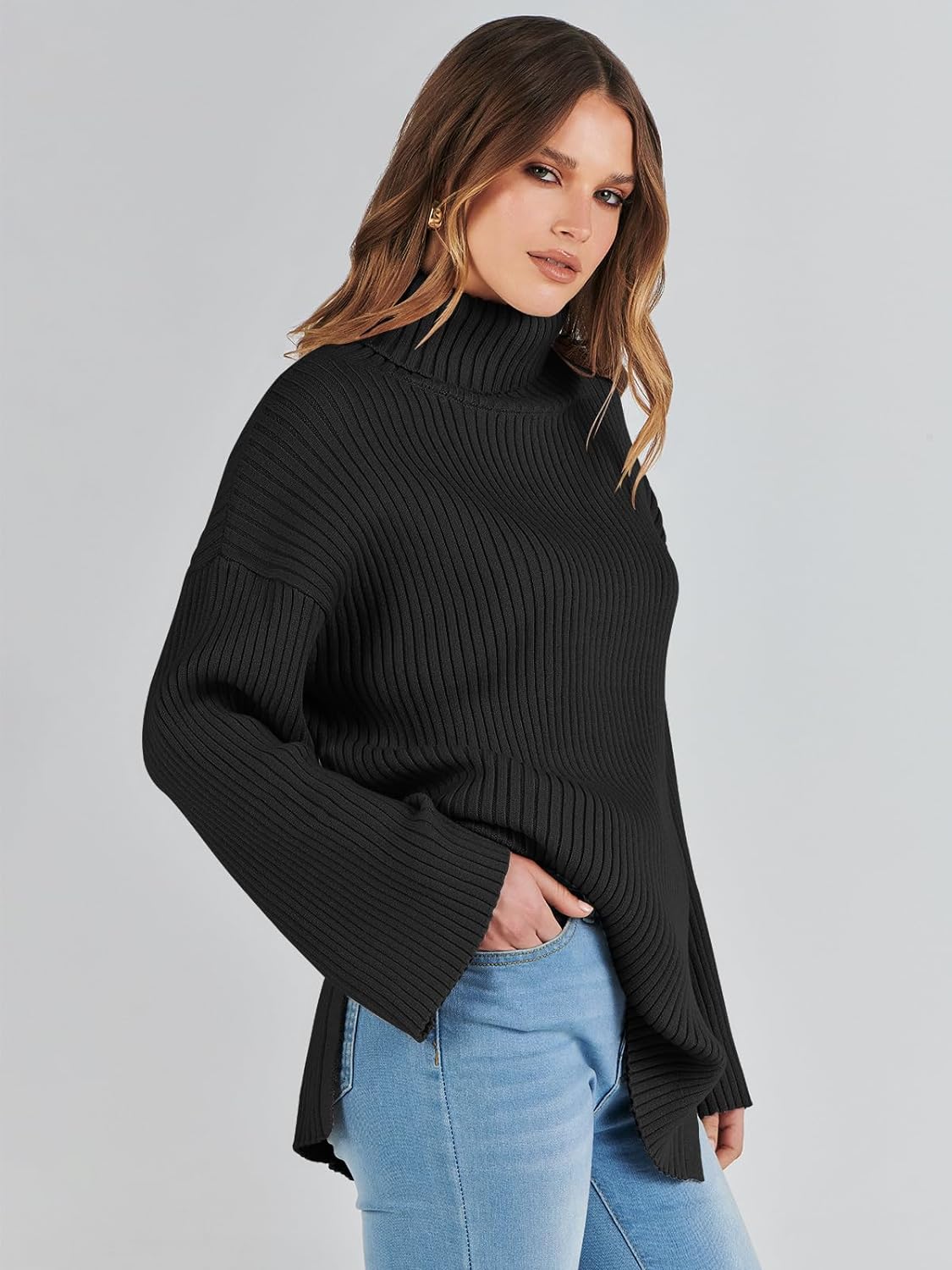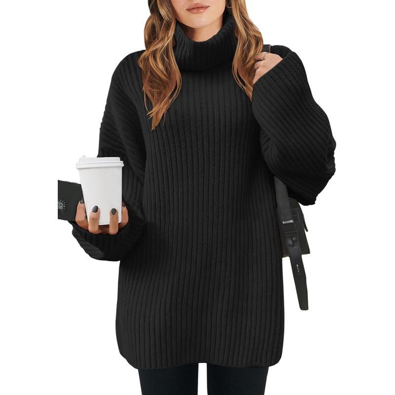 ANRABESS Womens 2023 Fall Turtleneck Oversized Pullover Sweaters Long Sleeves Ribbed Knit Chunky Sweater Tops(Black)