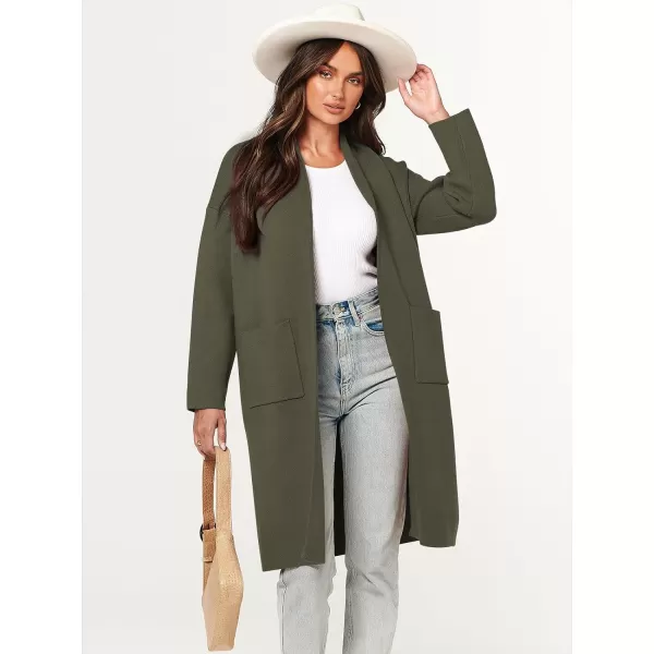 imageANRABESS Womens 2023 Fashion Cardigan Sweater Long Sleeve Open Front Lapel Coat Casual Knit Coatigan Jacket with PocketsGreen