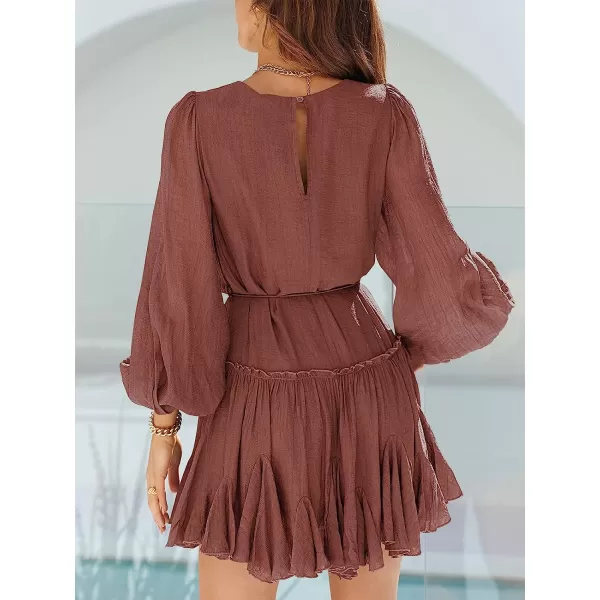 imageANRABESS Womens 2023 Spring Summer Crewneck Puff Sleeve Babydoll Dress Ruffle Tiered ALine Flowy Skater Mini DressRust
