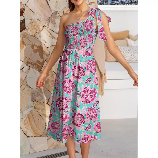ANRABESS Women’s 2023 Summer Bohemian One Shoulder Sleeveless Smocked Ruffle Tiered Beach Maxi Sun Dress(Z-floral Purple)