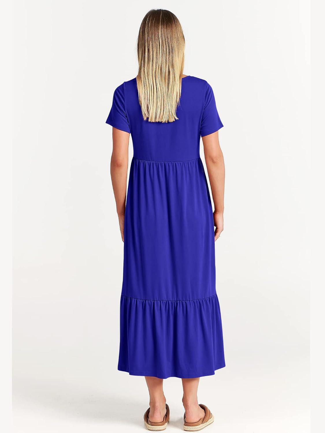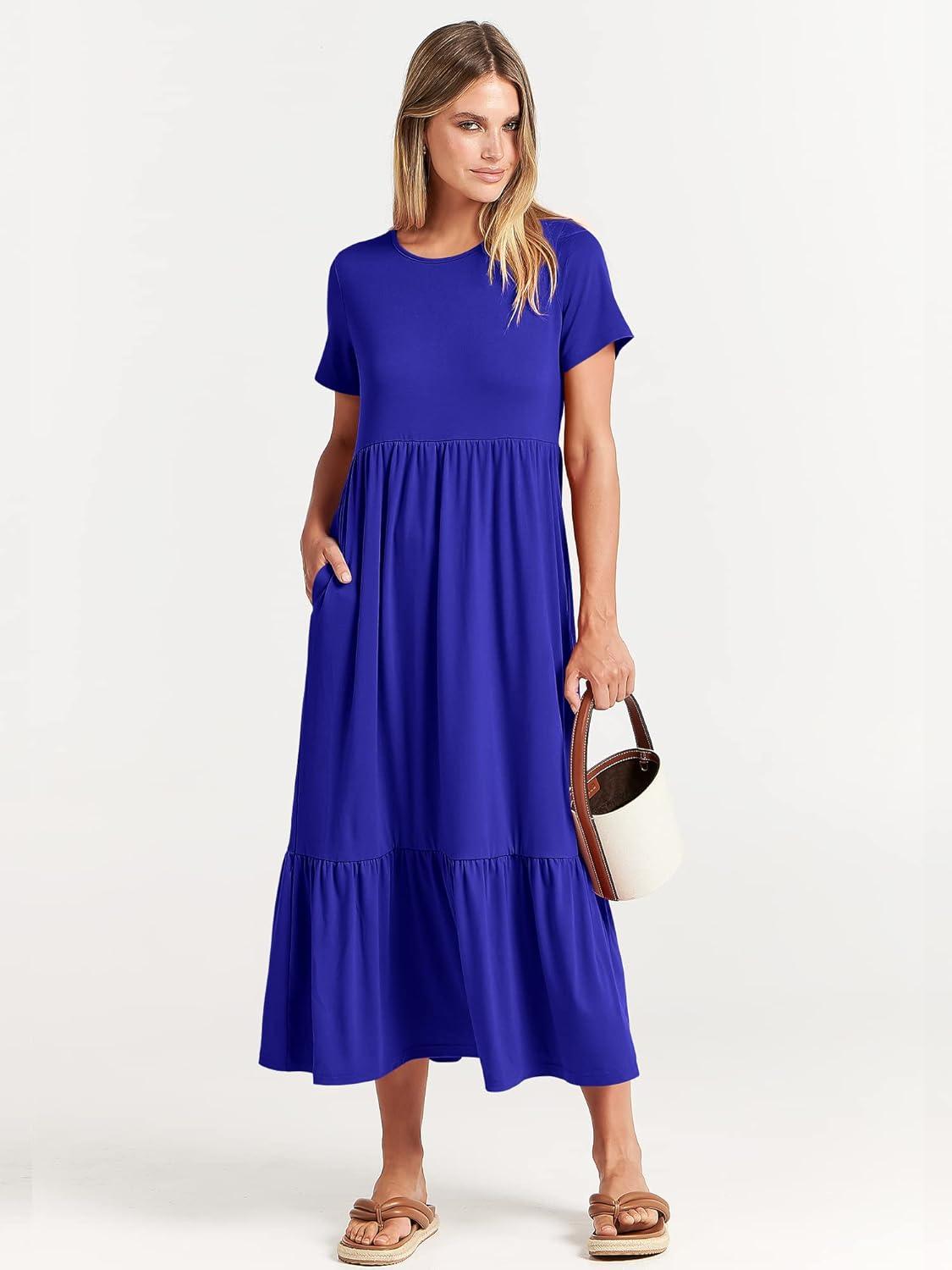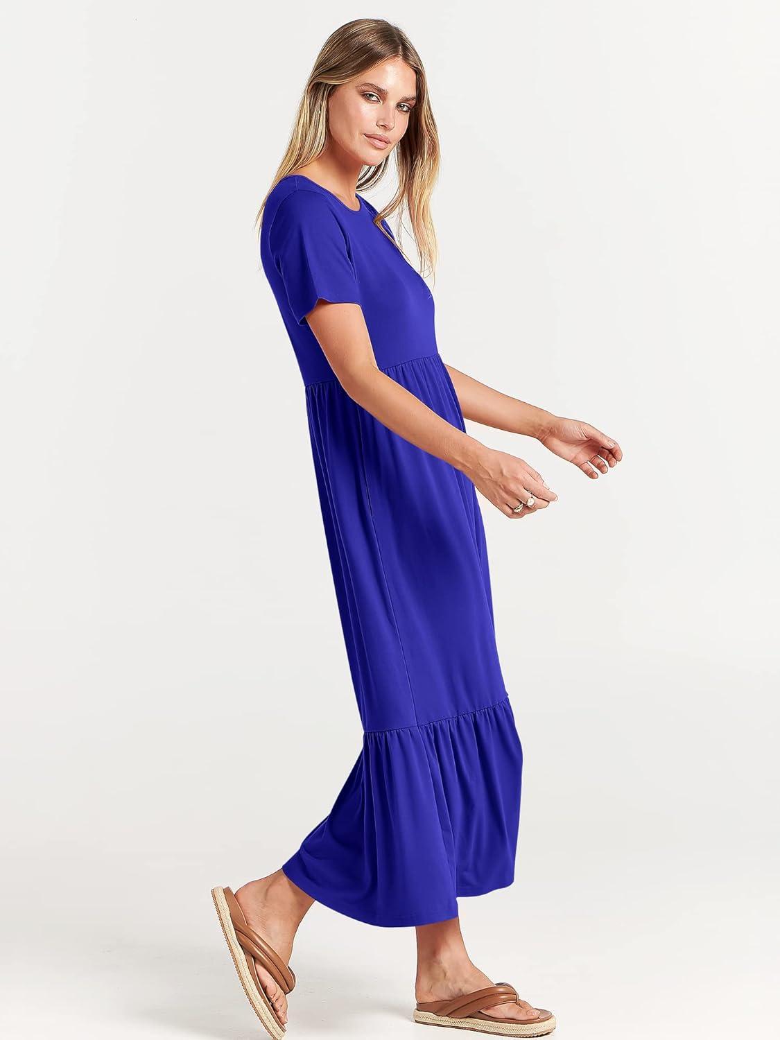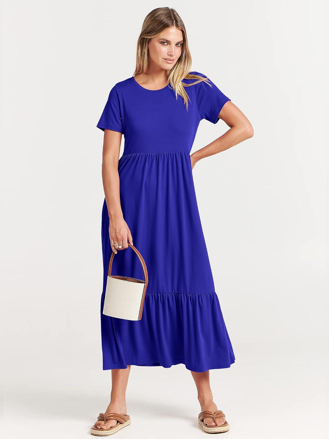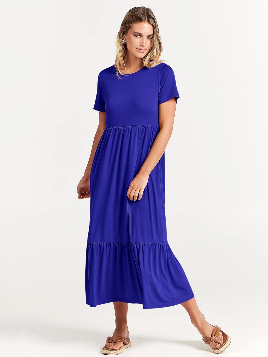 ANRABESS Womens 2025 Summer Casual Maxi Dress A line Tiered Flowy Short Sleeve Crewneck T Shirt Beach Travel Long Dresses(Royal Blue)