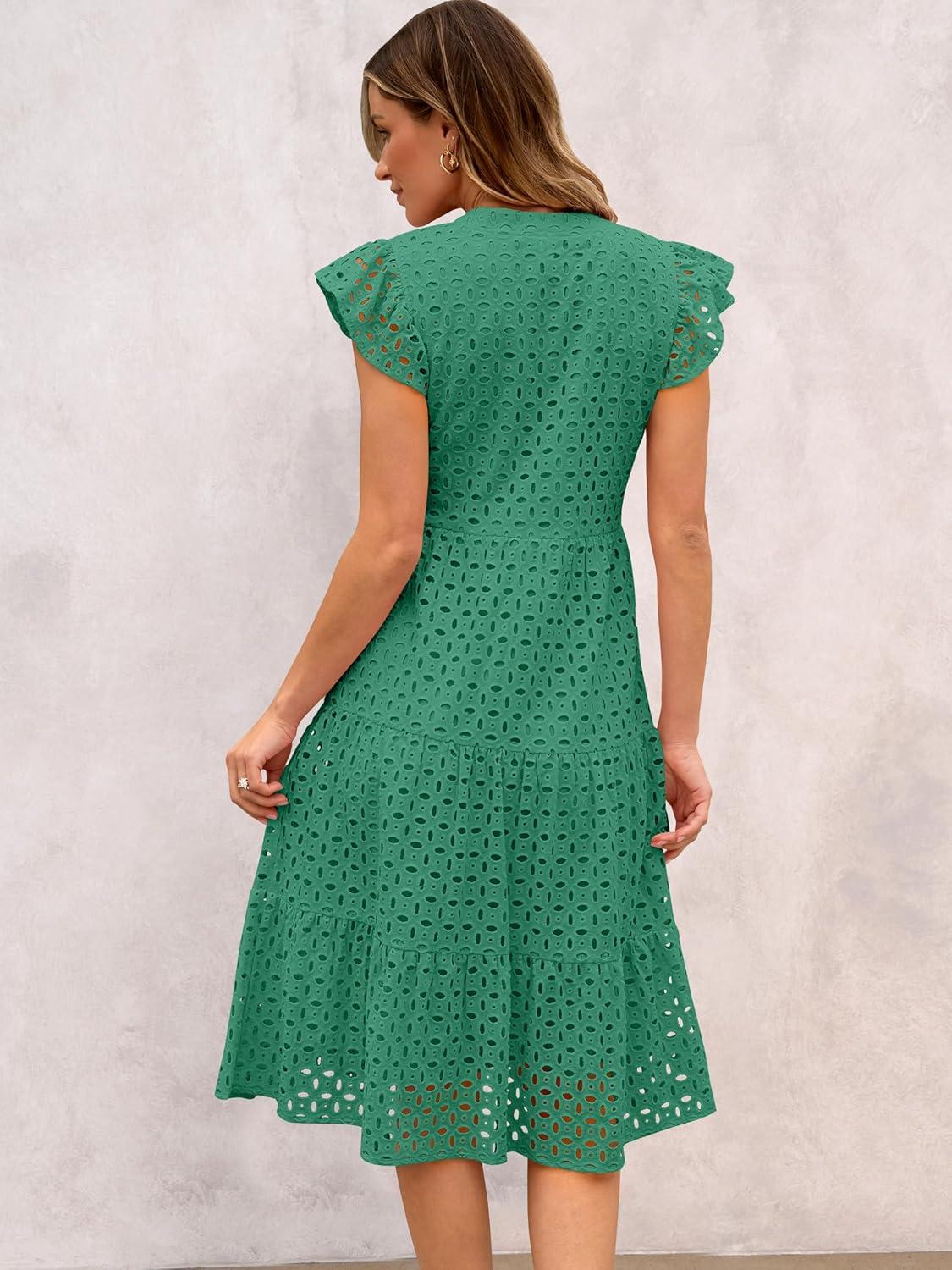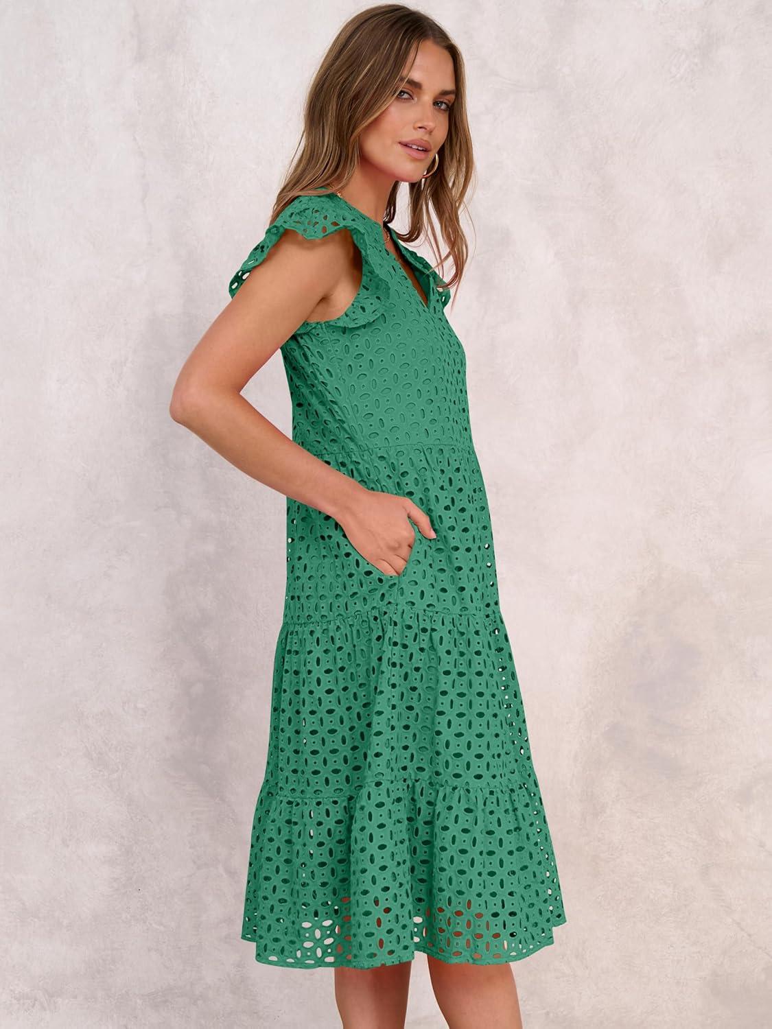Get your hands on our newest ANRABESS Womens 2025 Summer Midi Dress Hollow Out Eyelet Ruffle Sleeve V Neck Casual Flowy Tiered Beach Vacation Sundress(Dark Green) and enjoy a limited-time discount offer.