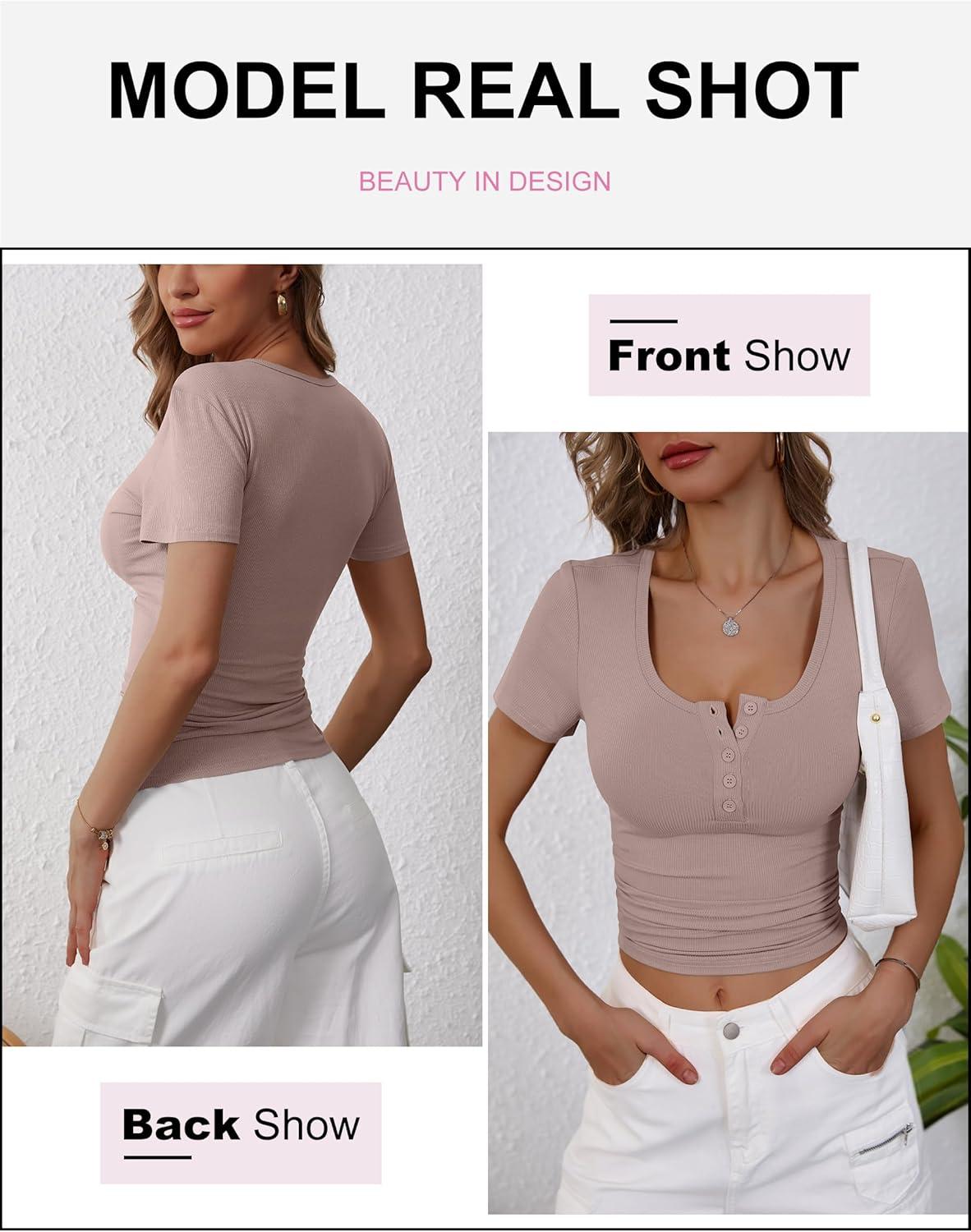 Be the first to review “ANRABESS Womens 2025 Summer Short Sleeve Tops Ribbed Knit Henley Button Up Slim Fit Basic Casual T Shirts Blouse Fall Outfits(Taupe)”