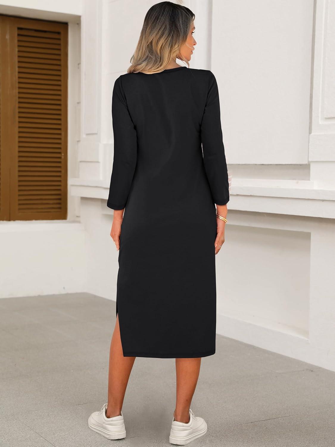 imageANRABESS Womens 34 Long Sleeve Striped Slit Midi T Shirt Dresses with Pockets 2025 Dressy Casual Fall Fashion Travel OutfitsBlack