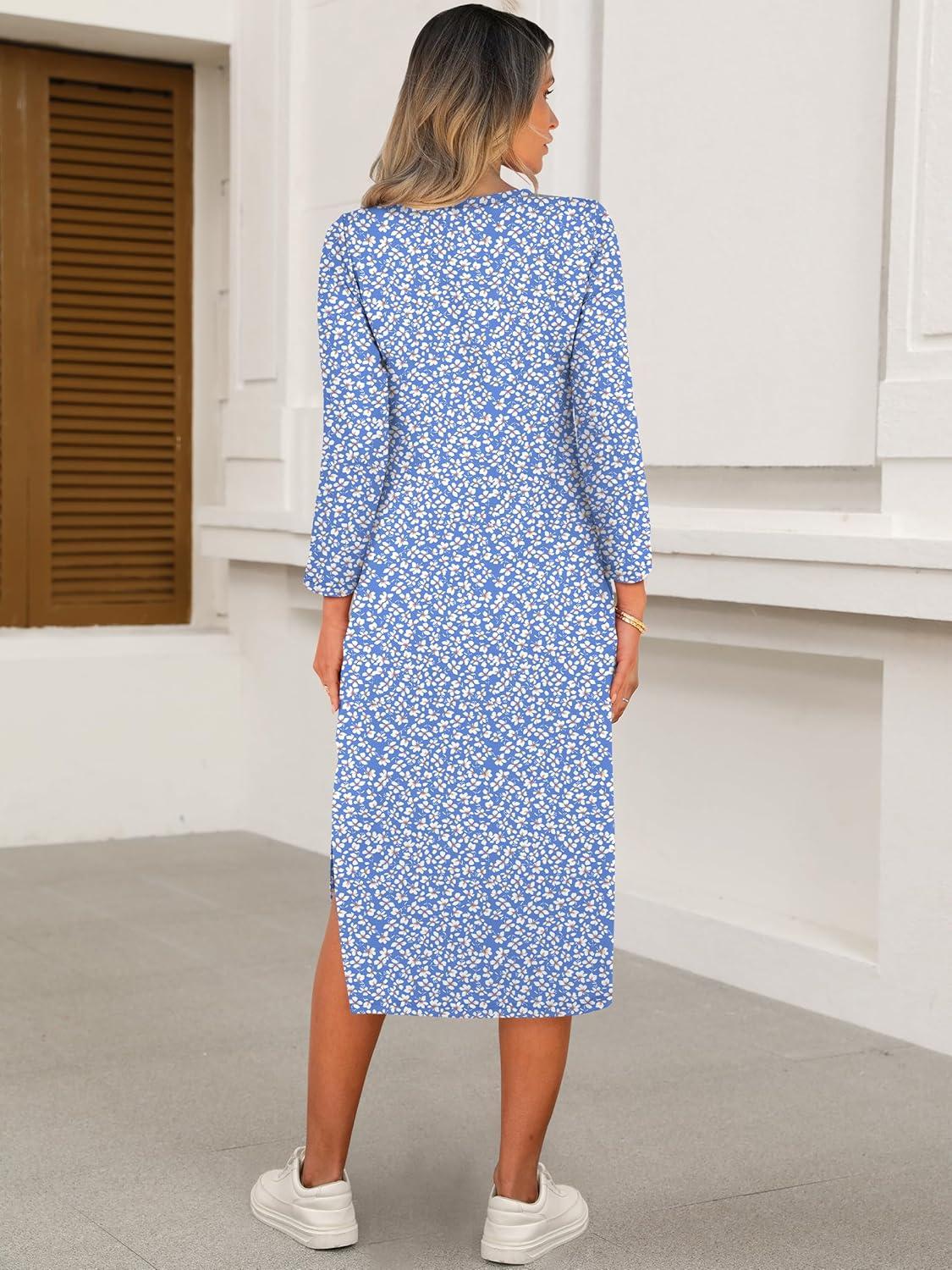 imageANRABESS Womens 34 Long Sleeve Striped Slit Midi T Shirt Dresses with Pockets 2025 Dressy Casual Fall Fashion Travel OutfitsFloral Blue