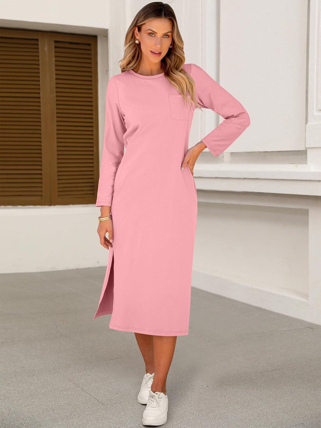 imageANRABESS Womens 34 Long Sleeve Striped Slit Midi T Shirt Dresses with Pockets 2025 Dressy Casual Fall Fashion Travel OutfitsPink