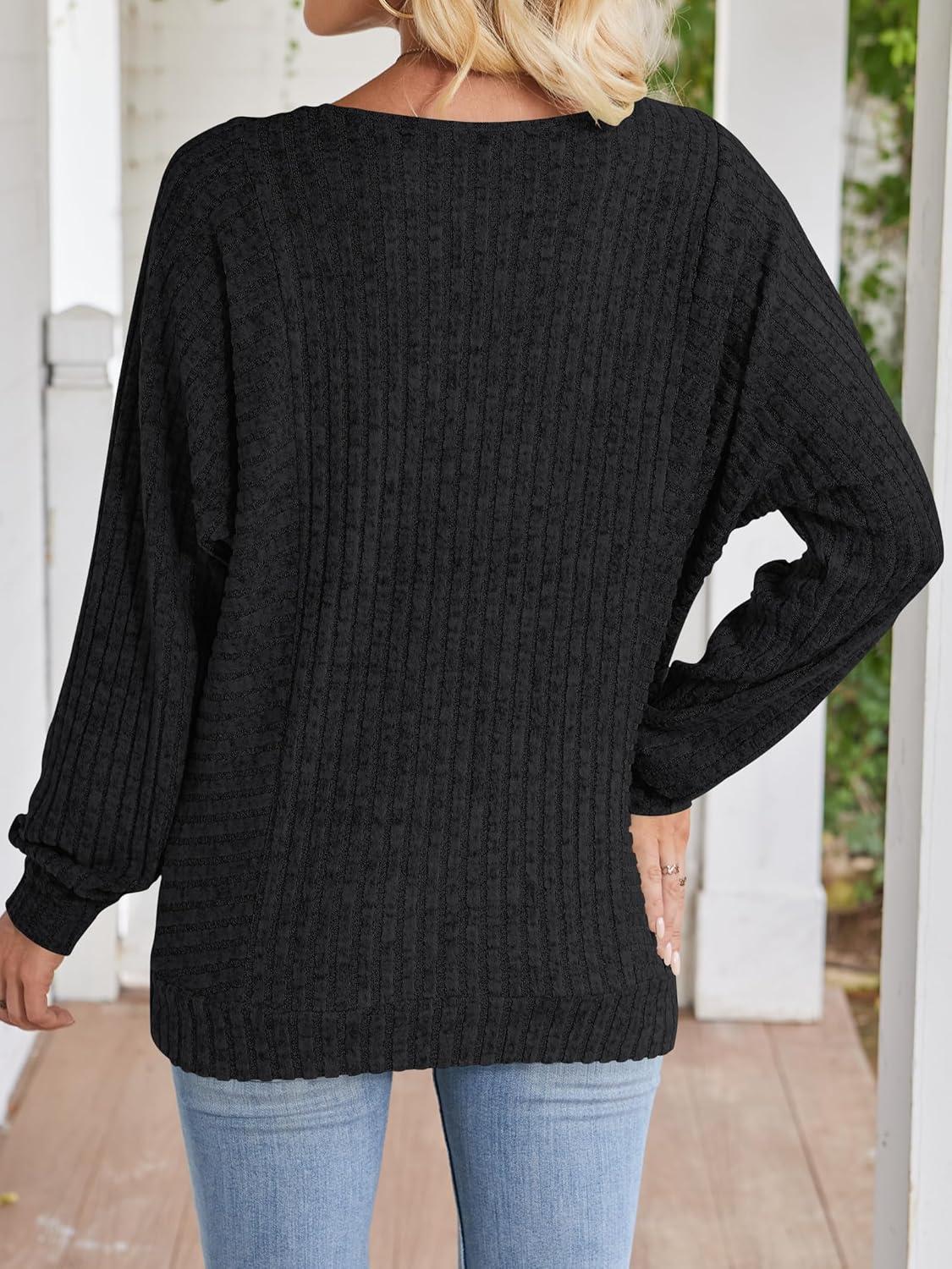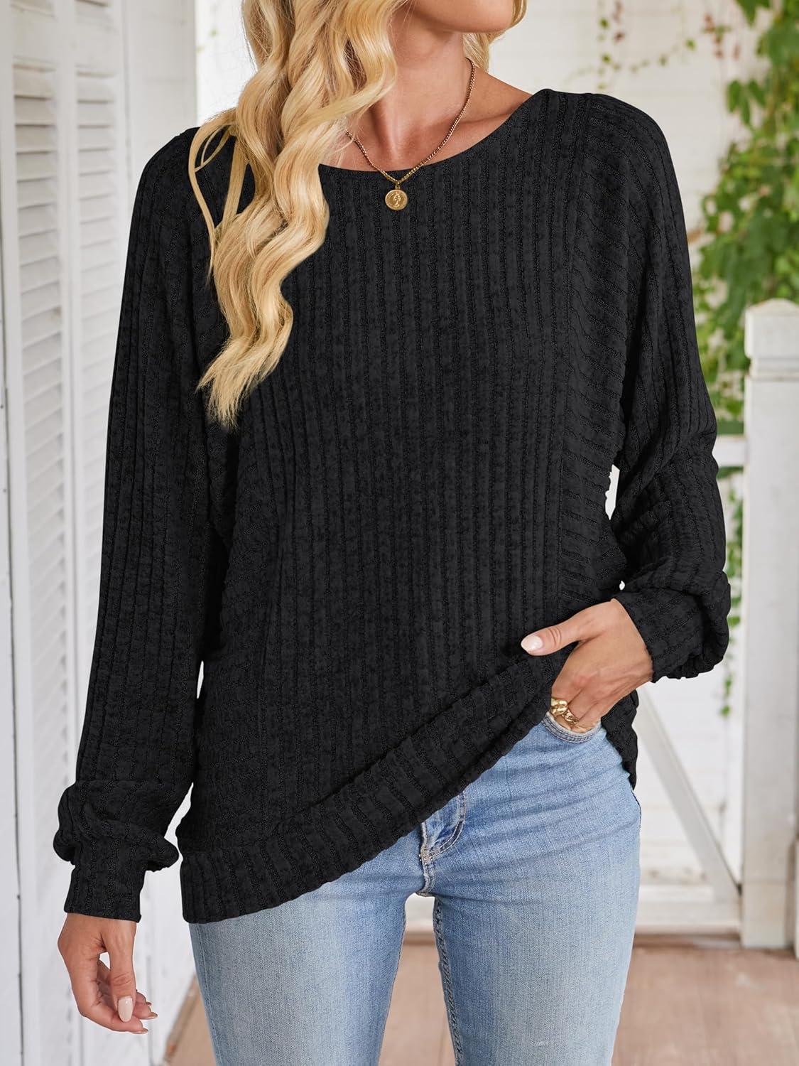 ANRABESS Womens Batwing Long Sleeve Shirts 2025 Fall Oversized Loose Fit Lightweight Sweater Dressy Casual Tunic Tops Blouse(Black)