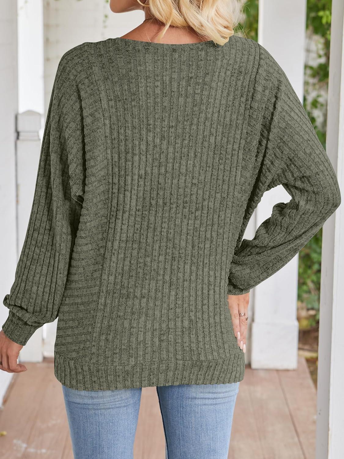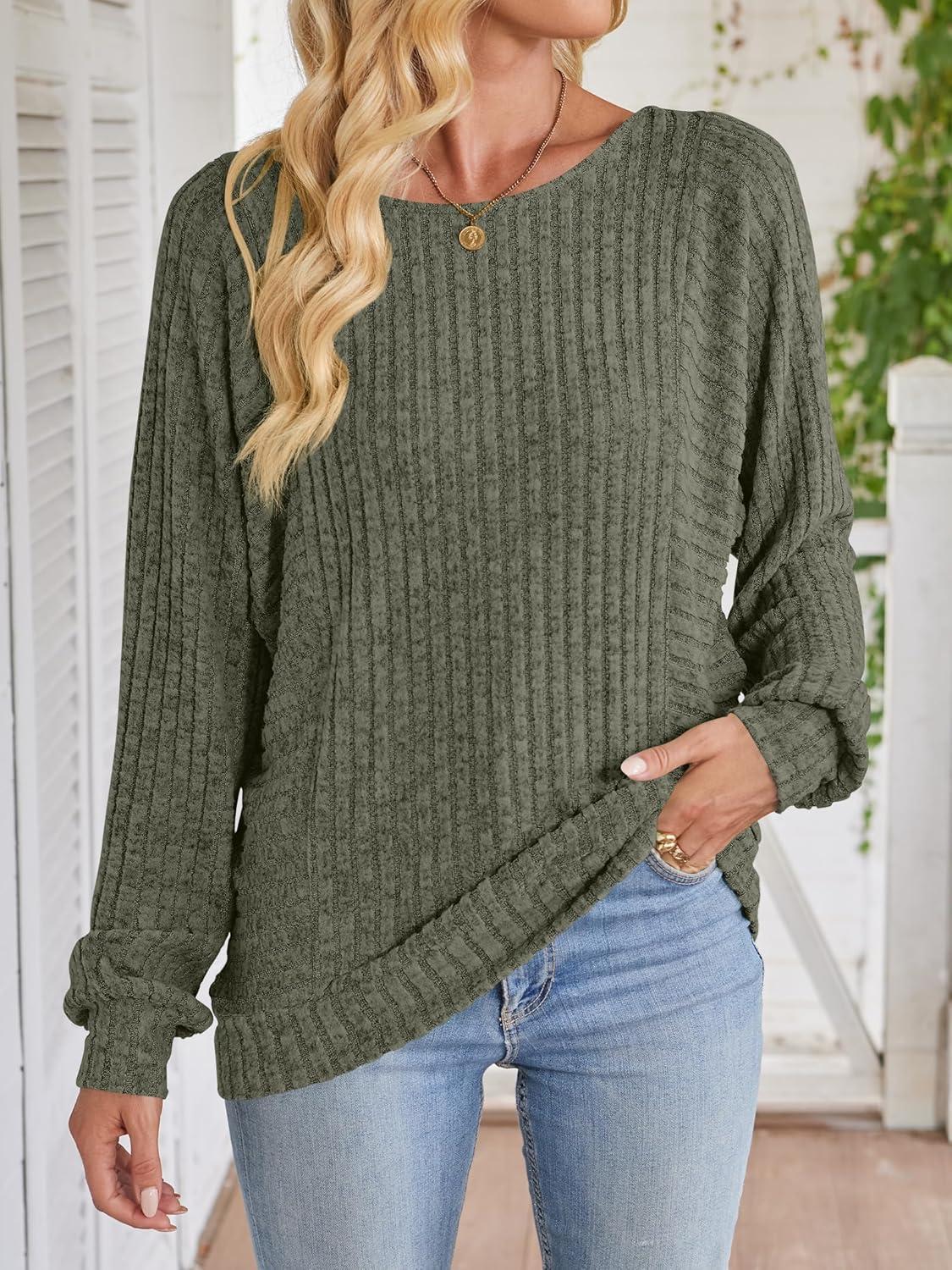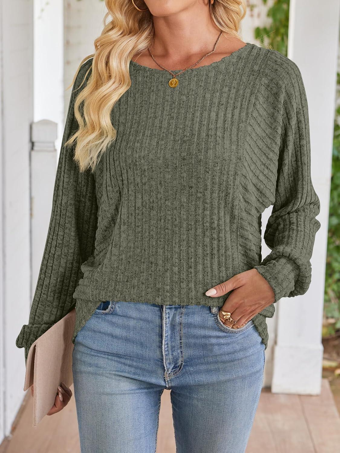 ANRABESS Womens Batwing Long Sleeve Shirts 2025 Fall Oversized Loose Fit Lightweight Sweater Dressy Casual Tunic Tops Blouse(Deep Green)